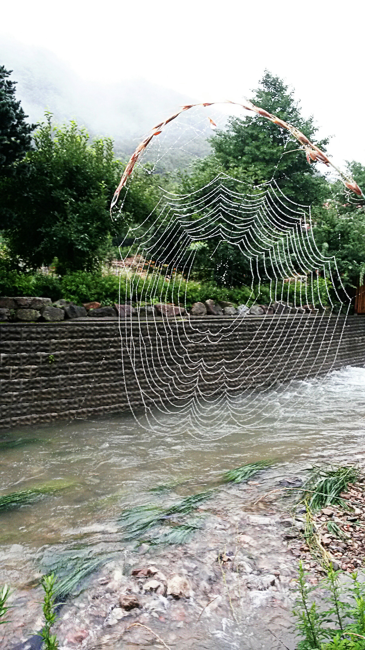 줄기를 기둥 삼아 천하무적의 거미줄을 쳐놓았다.