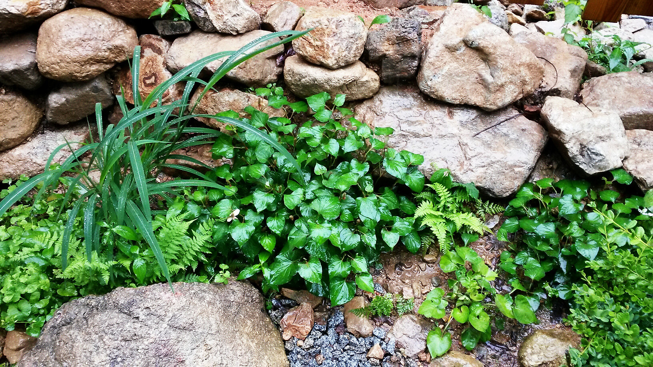 음지 정원의 부처손과 넉줄고사리 바위채송화는
