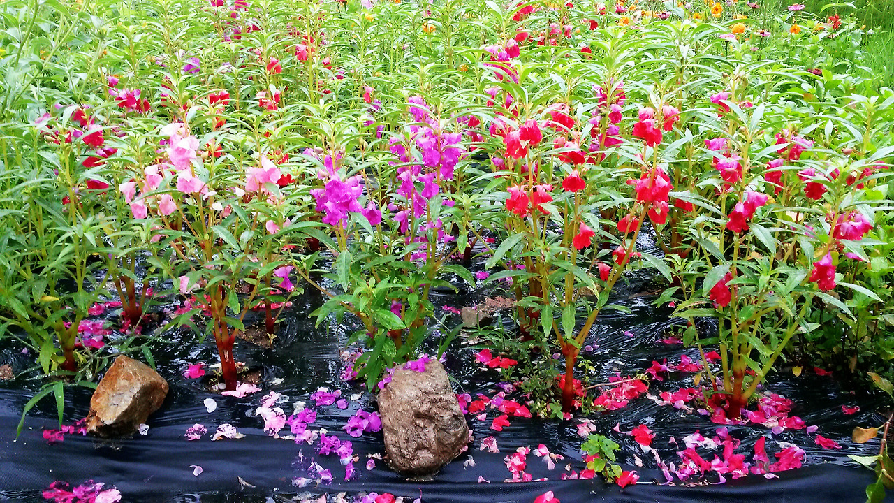 족두리꽃과 봉숭아 산수국 기린 꽃 베고니아도