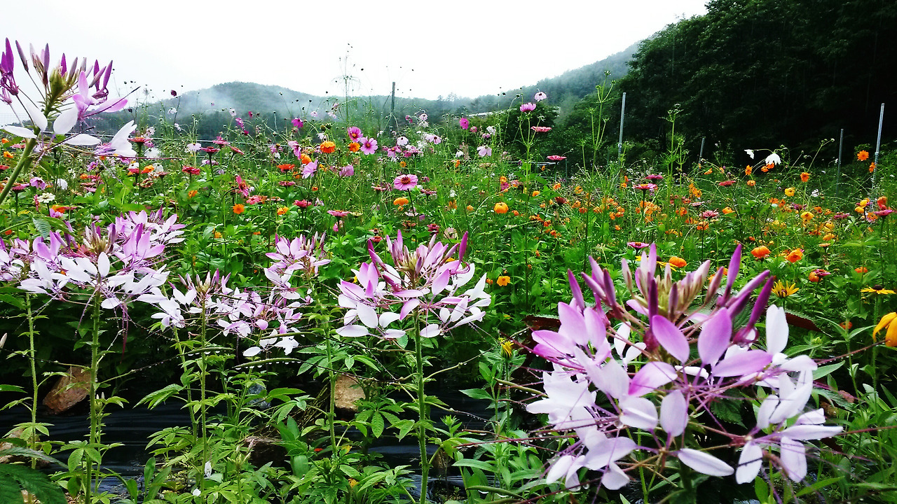 웃자란 백일홍과 코스모스는 이곳저곳에서