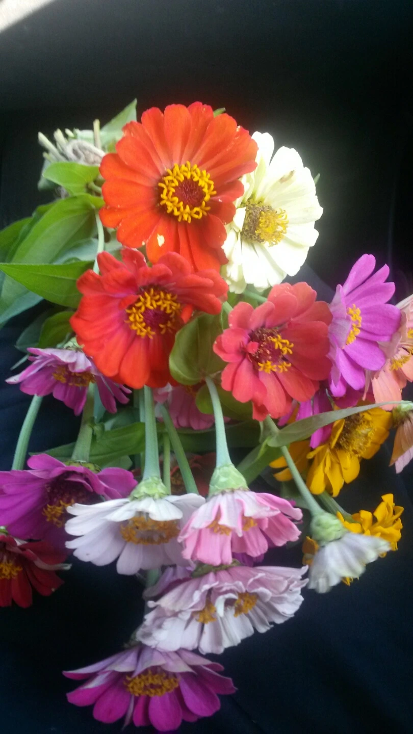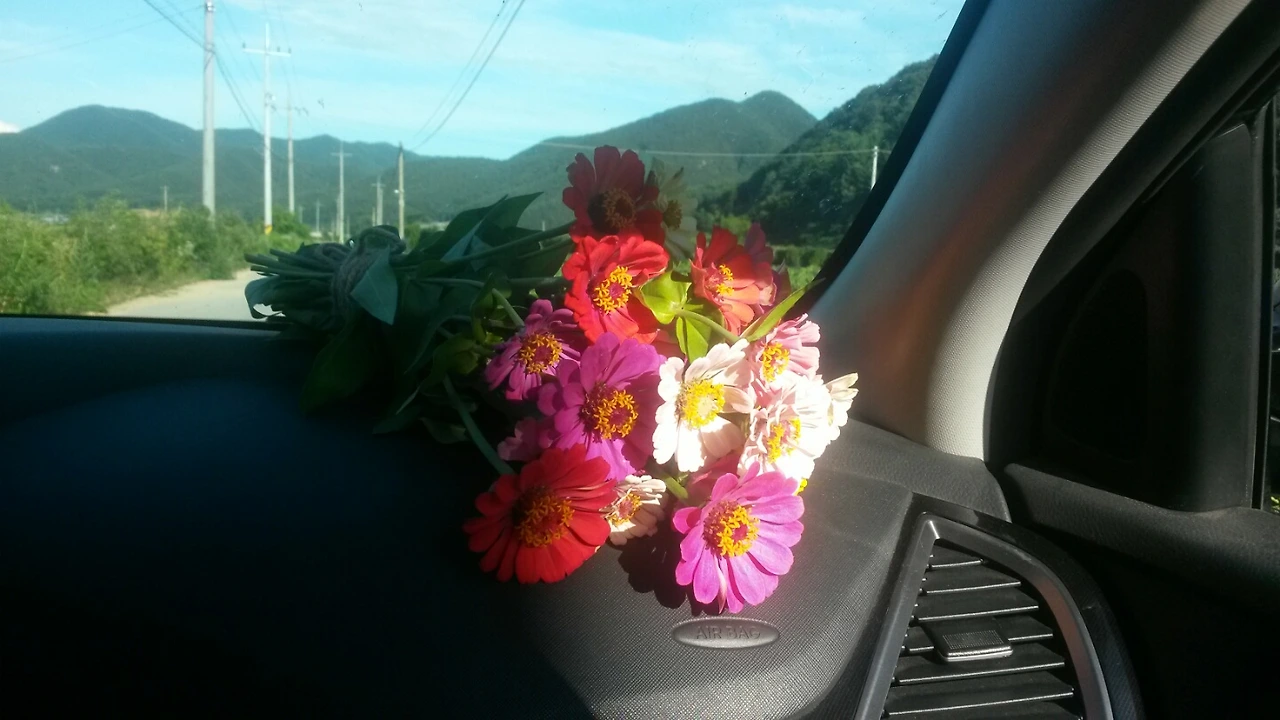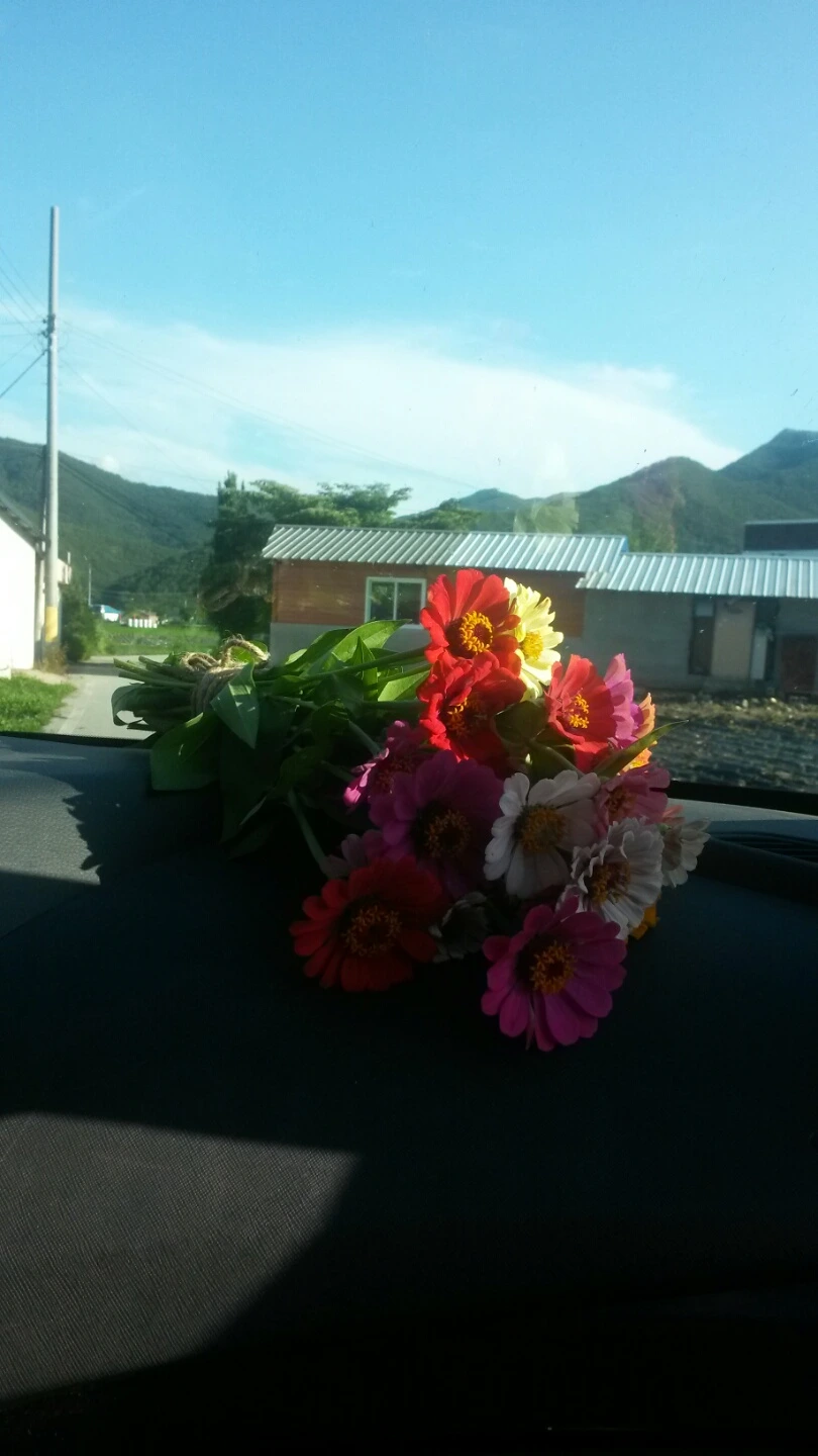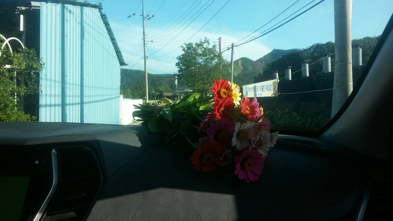 갖가지 색깔의 백일홍을 잘랐다. 차에 올라