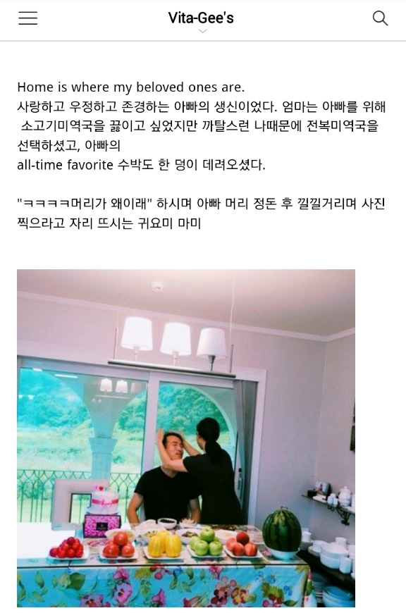 육식을 하지 않는 큰 애를 생각해서 고른 전복은 쇠고기나 황태만큼이나 미역과 잘 어울리는 재료여서 새로운 미역국을 만들 수 있었네요. 여름에 태어나 그런지 사시사철 수박을 좋아하는 당신을 위해 이번에 단골 과일가게를 만든 것도 생일상을 준비하며 만든 좋은 인연이에요.