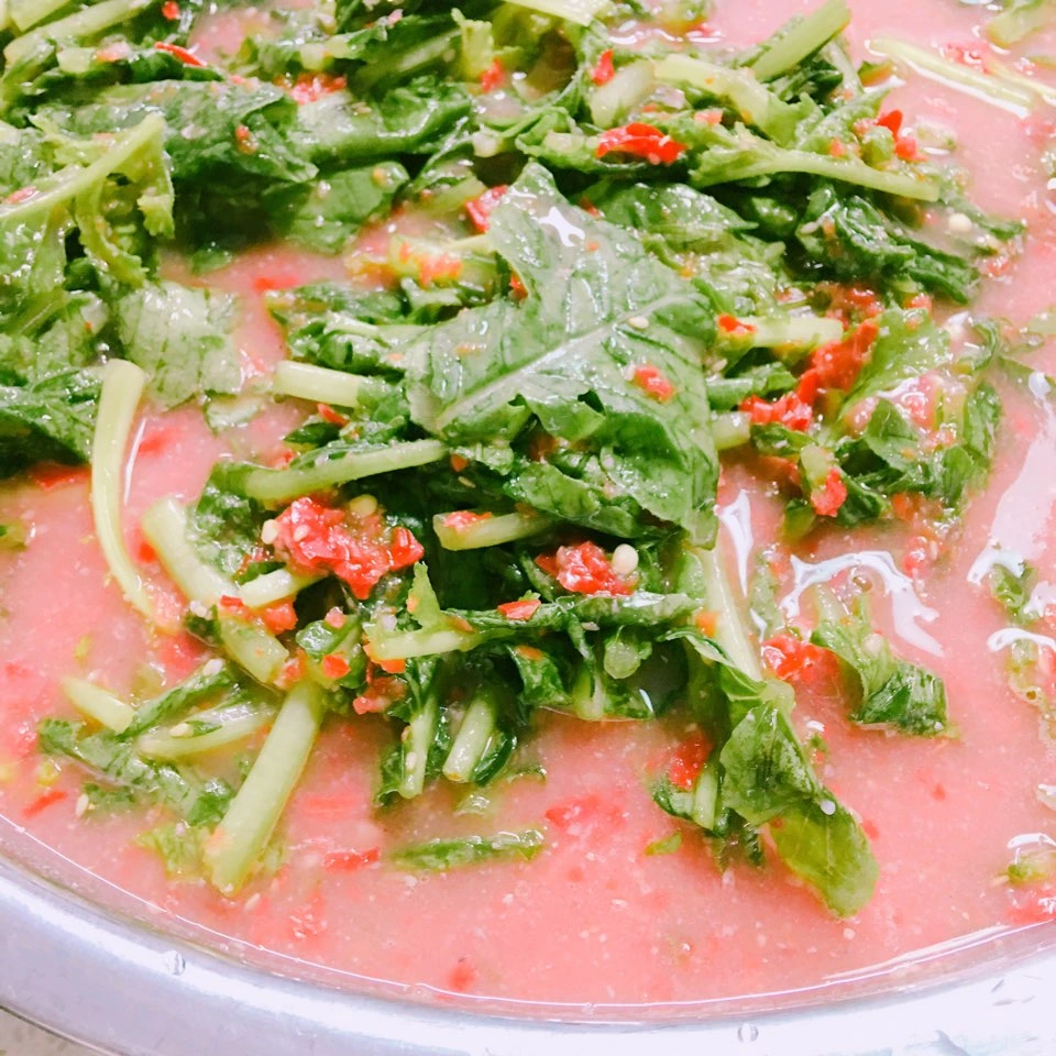 홍고추와 마늘 생강에 소금을 넣어 간했다. 중면을 삶아 오디식초와 맑은 크림색 모과 진액으로 새콤달콤한 열무국수도 만들었다.