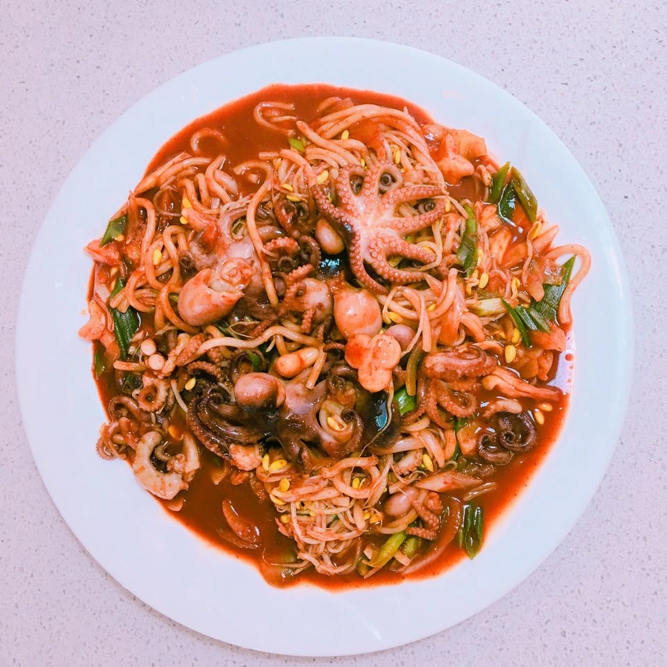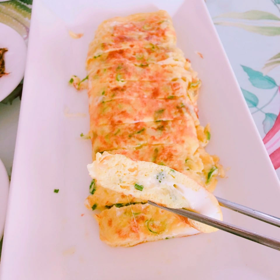 주꾸미 콩나물 볶음과 치즈를 넣은 두툼한 계란말이! 국물에 나물과 부추를 넣어 볶음밥을 한 뒤 김에 싸서 먹기도 하고.