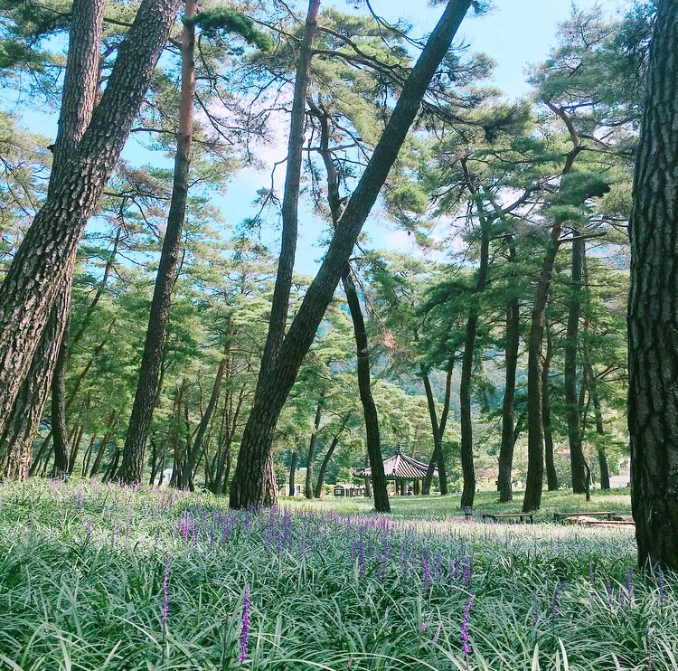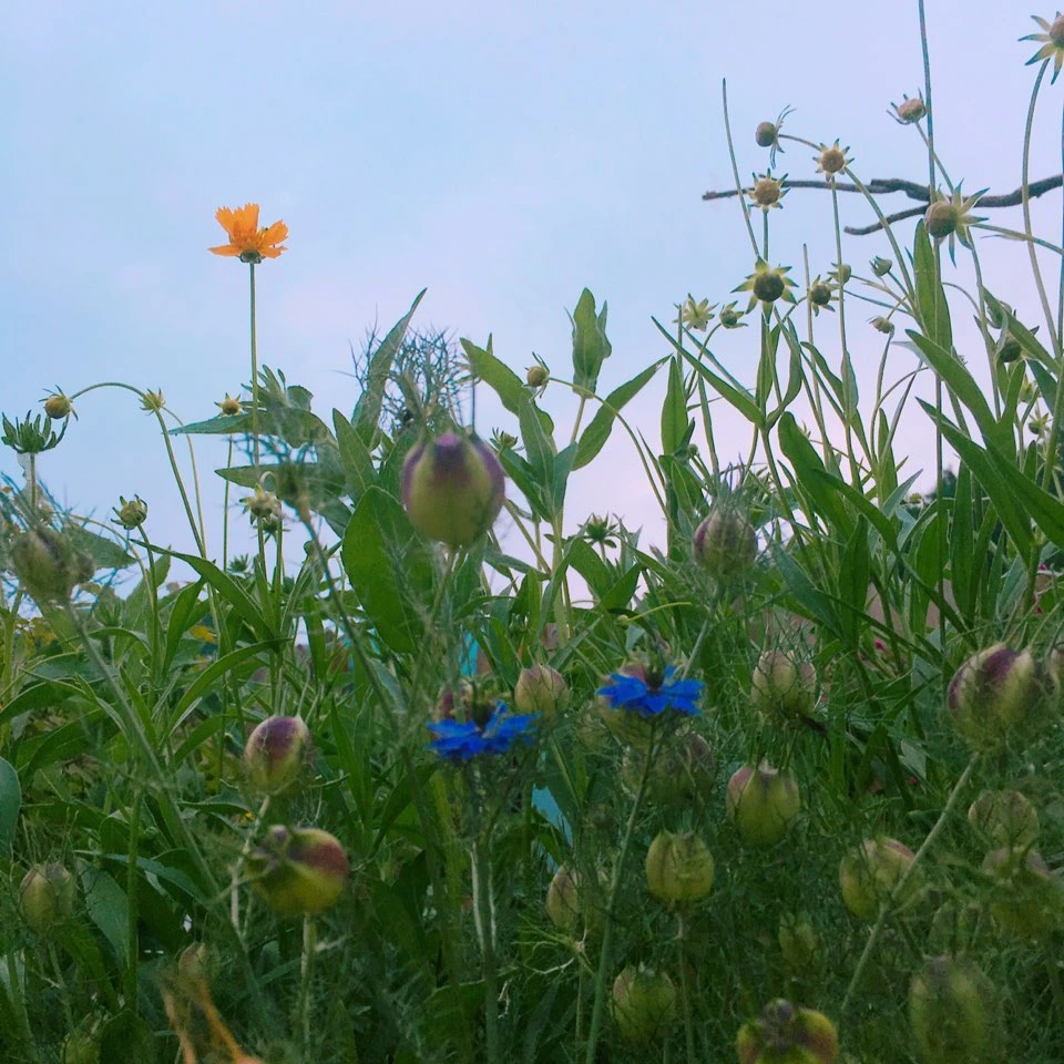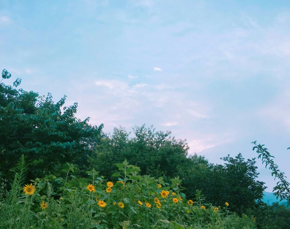 이제 보라색 꽃이 3분의 1쯤 피어난 넓은 원형의맥문동 숲!-함께 나들이를 갔던 아이들은 집에서 마지막으로 '버섯 불고기'를 먹고 도시의 제자리로돌아갔다.'마음에 파라다이스를 품고 떠난다' 했으니 폭염에도 일 잘하고 건강하게 지내기를 마음으로 기원한다. 이제 J와 나도 그간 미루어놓은 일들을 힘차게 해 나갈 수 있겠지? 하늘에 가을이 묻어오고 있다. 벌써!