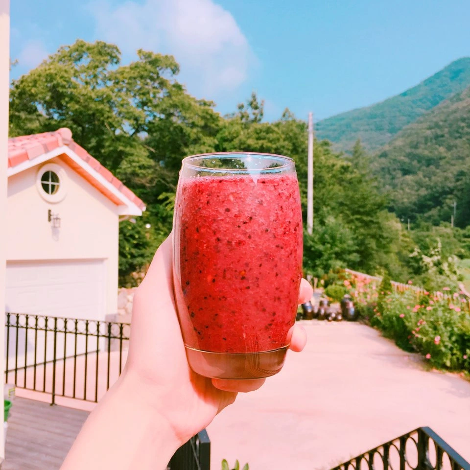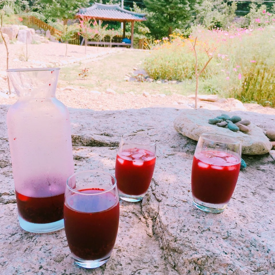 집 근처 산골 마트에서는 팔지 않던 열무를 시내에서 두 단 구입했다. 간 밤에 J에게 옥수수 삶는 법을 카톡으로 보냈건만 딱딱하여 먹을 수가 없게 삶아 놓았다. 큰 칼로 쓱쓱 훑어낸 알들과 복분자 과육을 믹서기에 함께 갈았다. 분홍색 옥수수 열무김치 녹말 국물이 되었다. 텃밭의