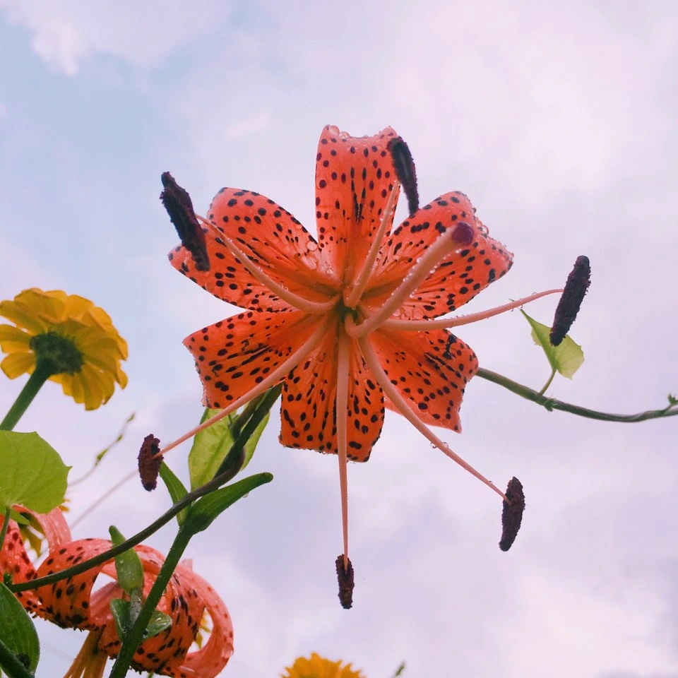 [나리꽃과 새 가지를 낸 단풍 그리고 꽃범의 꼬리]
