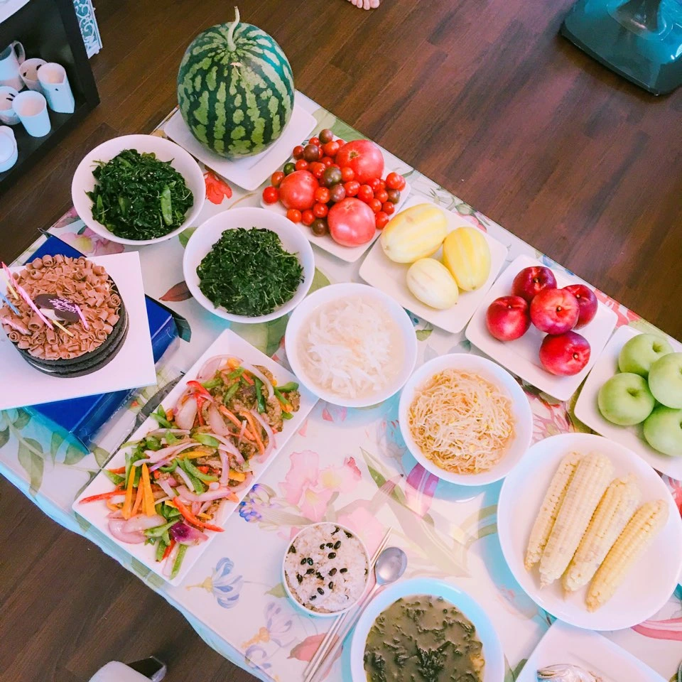 엄마 아빠가 직접 기른 수박과 참외 옥수수를 아이의 생일에 맞춰 첫 수확했다. 토마토 고춧잎깻잎나물도 텃밭에서 수확한 거다. 고추잡채에 아이는 감동의 마음을 거침없이 표현하며 즐거워했다.
