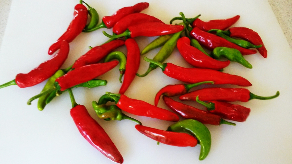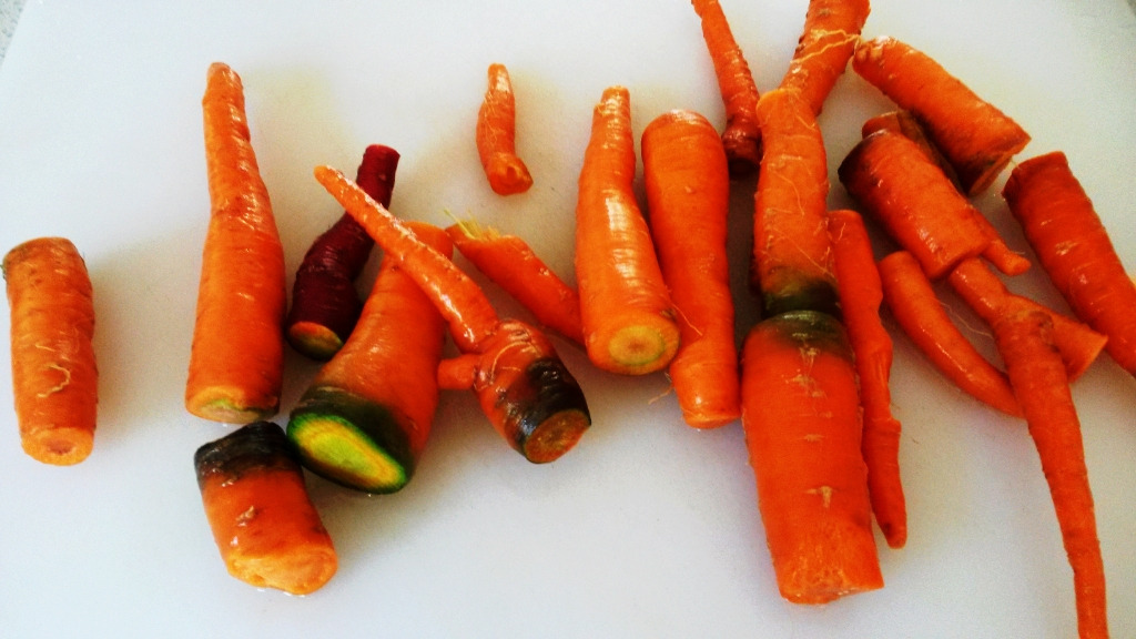 수확한 당근과 고추. 비교적 자유스럽게 생긴