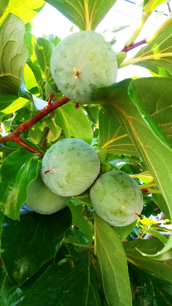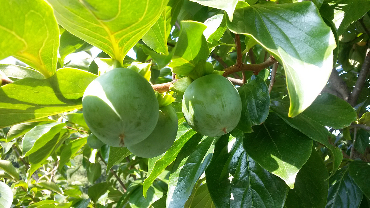 ● 울타리 목으로 줄지어 늘어선 감나무의 풋감들