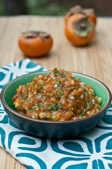 잘 익은 감을. 이용한 요리는 컬러만으로도 식욕을