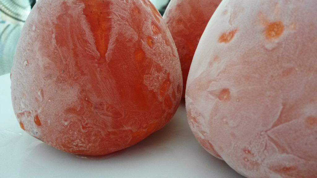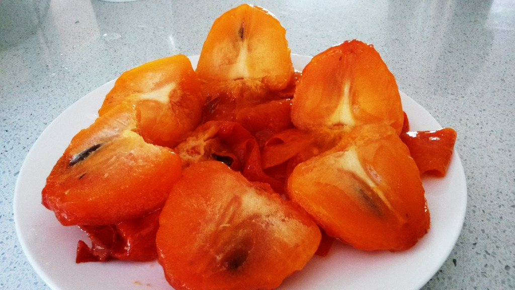 찻물을 준비하던 중이라 언 홍시 위로 뜨거운