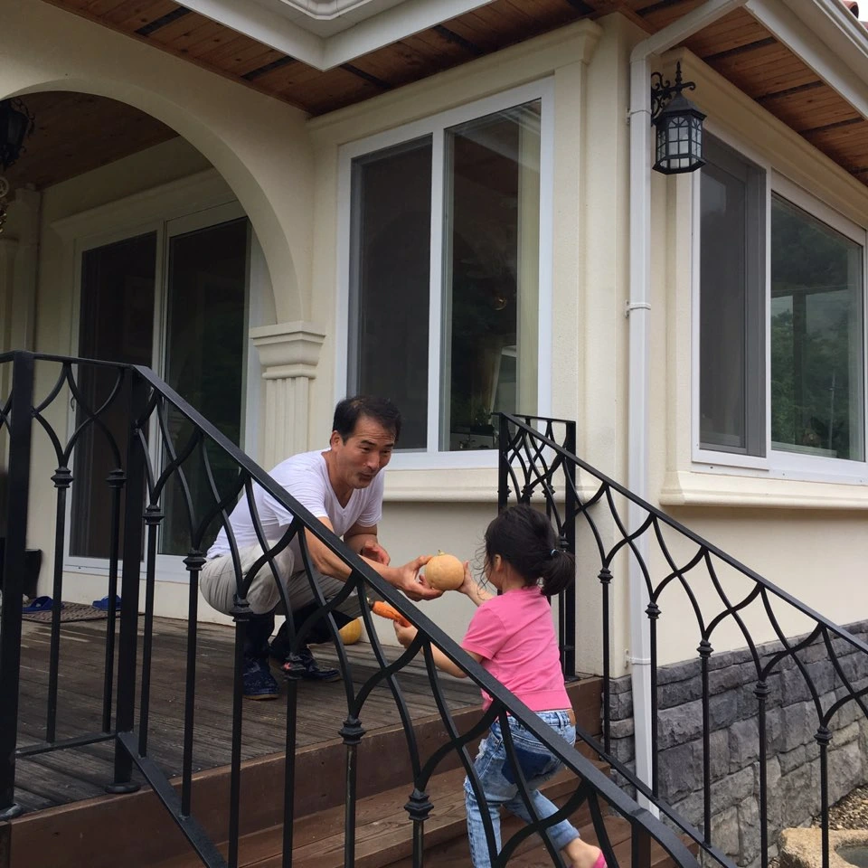 밤늦게 도착한 그들을 맞이하기 위해 우리 부부