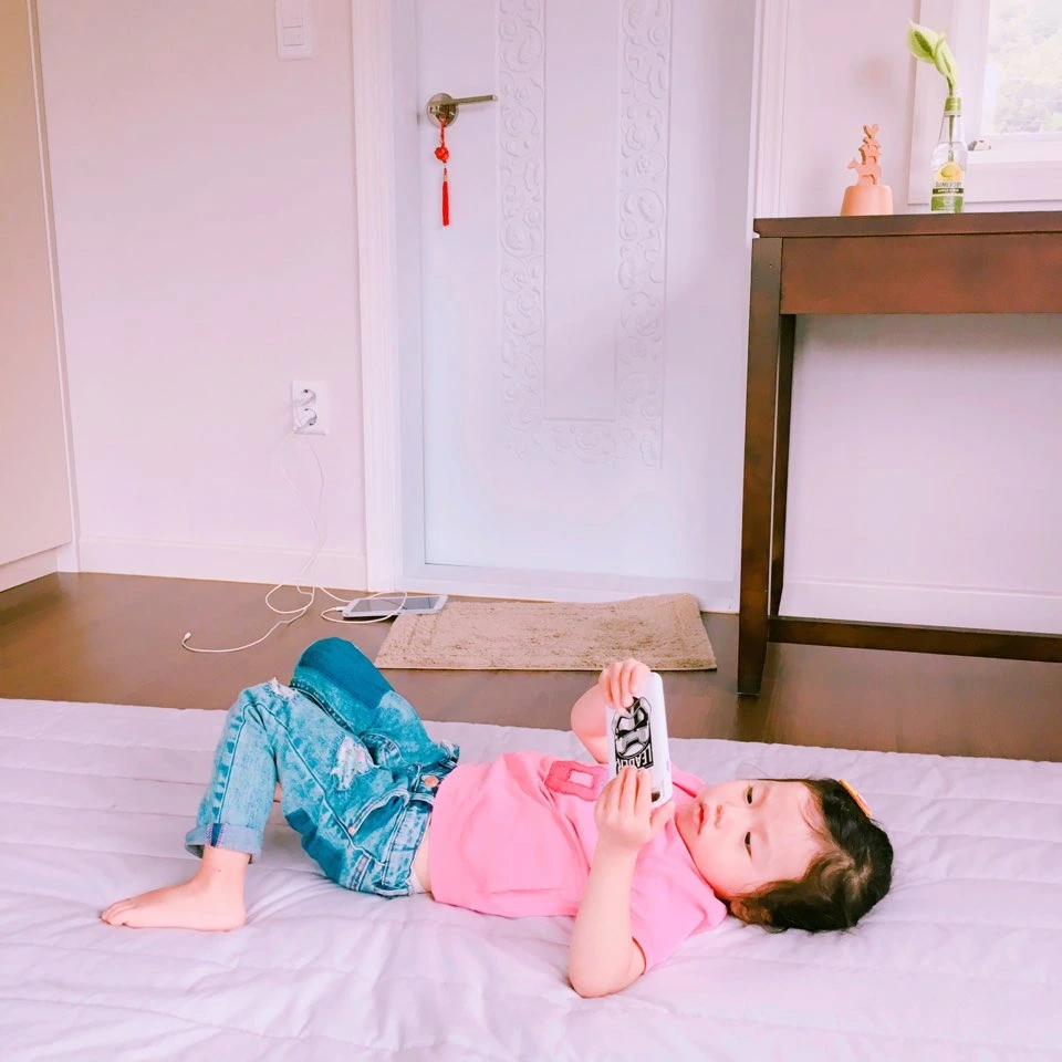 스마트폰을 하더니 결국 드러누워서도 몰입 중.