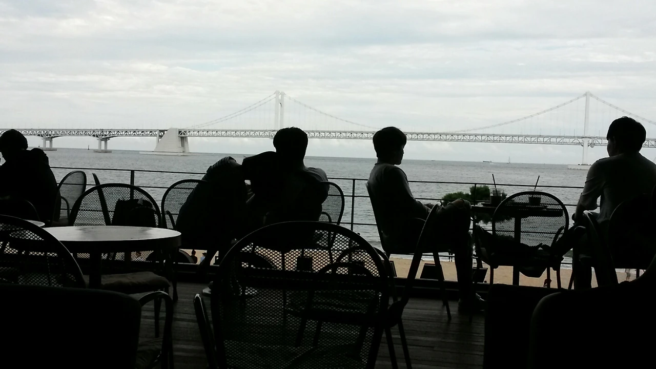 큰 아이는 바다 중 광안리를 특히 좋아한다며 할머니 곁에서 수시로 엄마의 일이 끝나기를 확인하였다. 끙끙 앓고 계신 시어머니의 일은 자정을 지나 제사 직전까지 계속되리라. 세 동서의 출현이 예상되는 시점에 아이의 바람을 핑계 삼아 우리 가족은 광안대교가 눈 앞에 펼쳐지는 Coffee Smith로 갔다. 바다를 바라보고, 모래사장을 걷기도 하고, 제트스키가 모래사장 가까이에 까지 다가와 벌이는 거친 묘기를 보며 희희낙락했다.