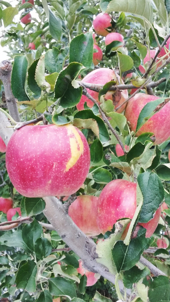 모양이 울퉁불퉁 해도, 껍질이 햇볕에 화상을 입어도, 더 이상 견디지 못하고 가지에서 떨어지거나, 색깔이 예쁘지 않아도 사과는 그 속에 최고의 맛을 감추고 있을지 모른다. 도시에서는좀처럼 맛난 사과를 고를 수가 없었는데 여기서는 맛없는 사과 찾기가 오히려 힘들다. 하늘공원을 구경한듯한 멋진 시간이었고, 여름의 불볕을 견딜 수 없어 사과와 함께 얼굴이 새까맣게 된 그분들의 혼연일체에 수확의 무게감을진하게 느낀다.