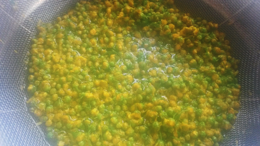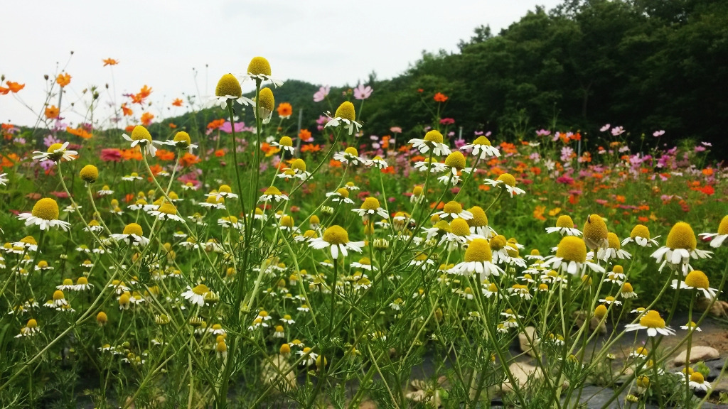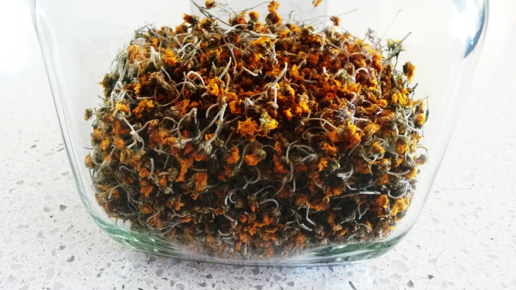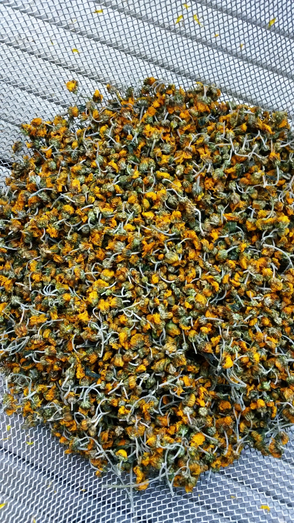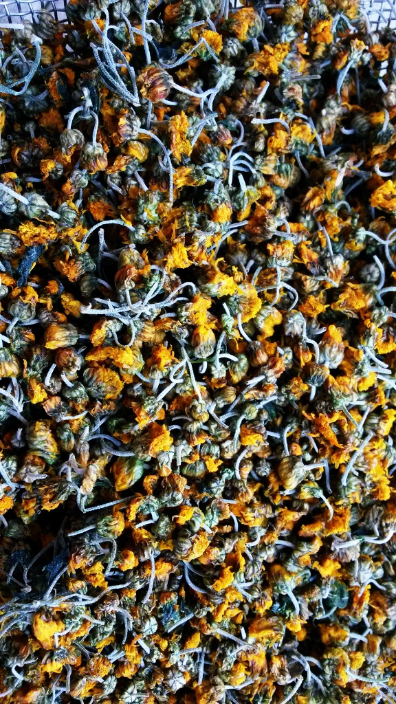 카모마일은 생각보다 수확이 많지 않았다. 산국화는 물에 데쳤지만 카모마일은 그늘에서 말린 후 냉동 보관 중이다. 다른 차와 블렌딩 해보면 대체로 다 잘 어울린다. 수확의 시기도 빨라서 8월에 꽃을 다 수확했고 일부는 차로 일부는 씨앗으로 보관 중이다.