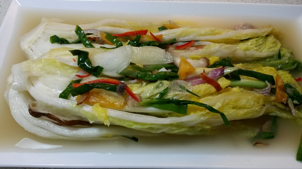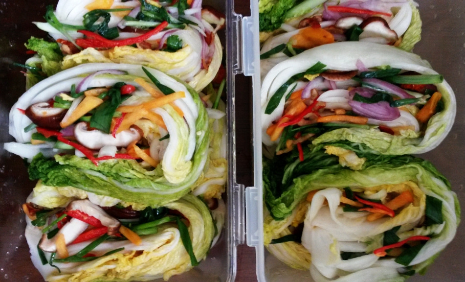 국물을 부어두었으니 이틀쯤 후엔 영양만점 백김치를 상에다 차려낼 수 있겠지? 두 포기로 두 통이 완성되었다.