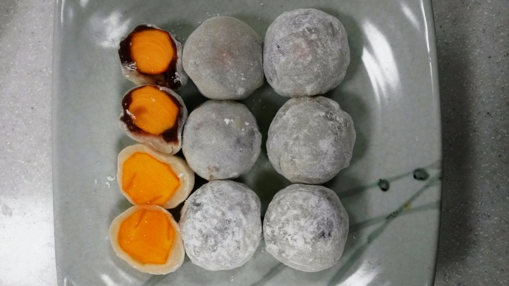 우리 팀은 모양에 자신이 없어 완성품을 죄다잘라 놓았고 그러다 먹어버린 것도 많았다.부엌일이 서툰 아가씨 팀은 뭔가 매끄럽지 못한제멋대로의 홍시 찹쌀떡을 만들었다-아래 사진 왼쪽. 우린 '못생겨도 맛은 좋아'를 실감하며 제자리에서 만들어 먹는 찹쌀떡의 시간을 즐겼다.