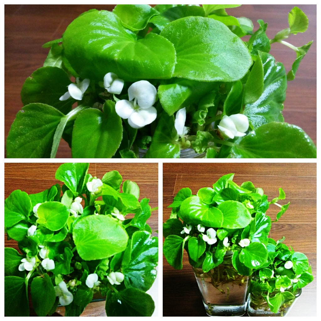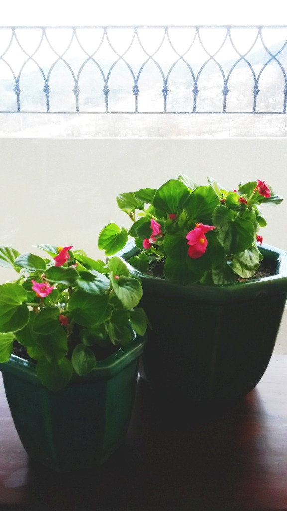 기름을 바른 듯, 깨끗이 세수를 한 듯, 방금목욕시킨 아기처럼 말끔하게 윤이 나는 베고니아 잎. 실내에 들여놓으니 웃자라서 목을제대로 가누지 못했다. 이층 방 창가로 옮겨 햇빛을 쬐면서부터는 단단해졌다. 왕성한 줄기
