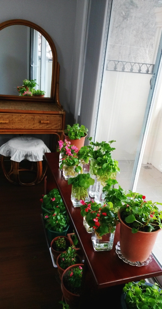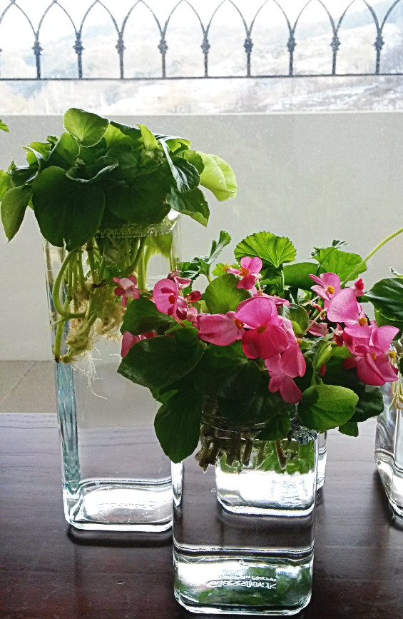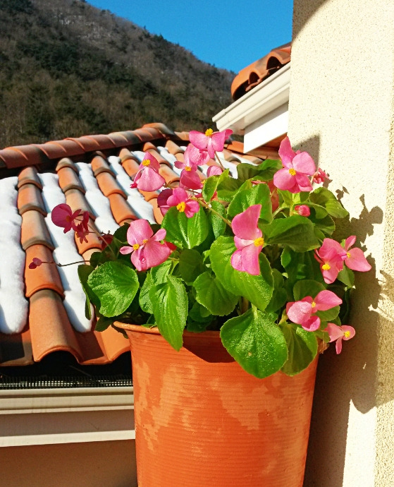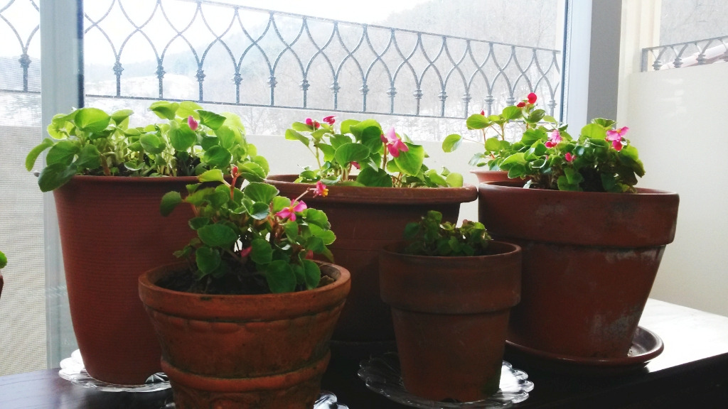 지금 시작해도 늦지 않으나 봄까지 풍성하긴어렵겠다. 창가에서 밤낮으로 뿌리를 내리는베고니아 이야기다. 늦가을 목숨줄만 지탱하며 정원의 사질토에서 사그라들던 뿌리를 밭 흙과배양토를 절반으로 섞어서 만든 화분에 옮겨주니 한겨울에도 꽃을 피우고 있다.