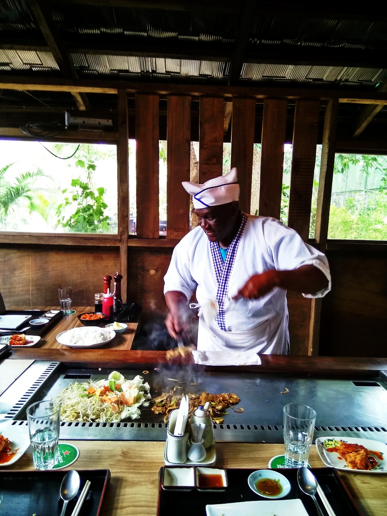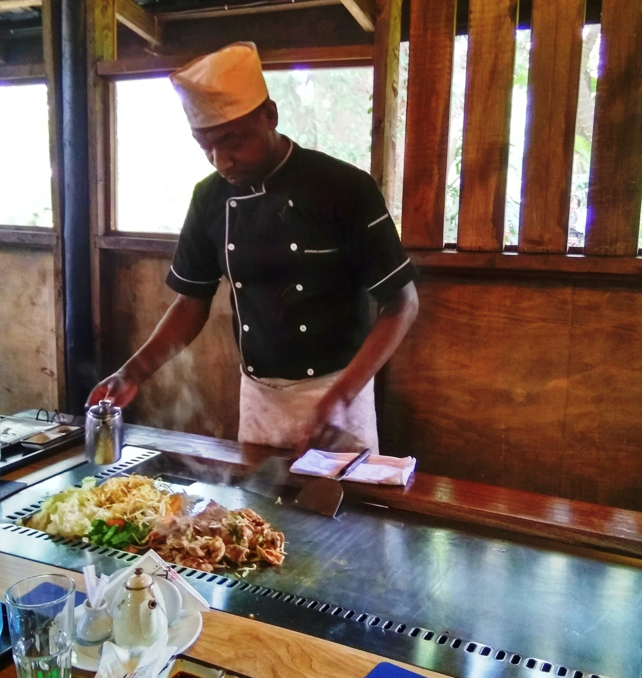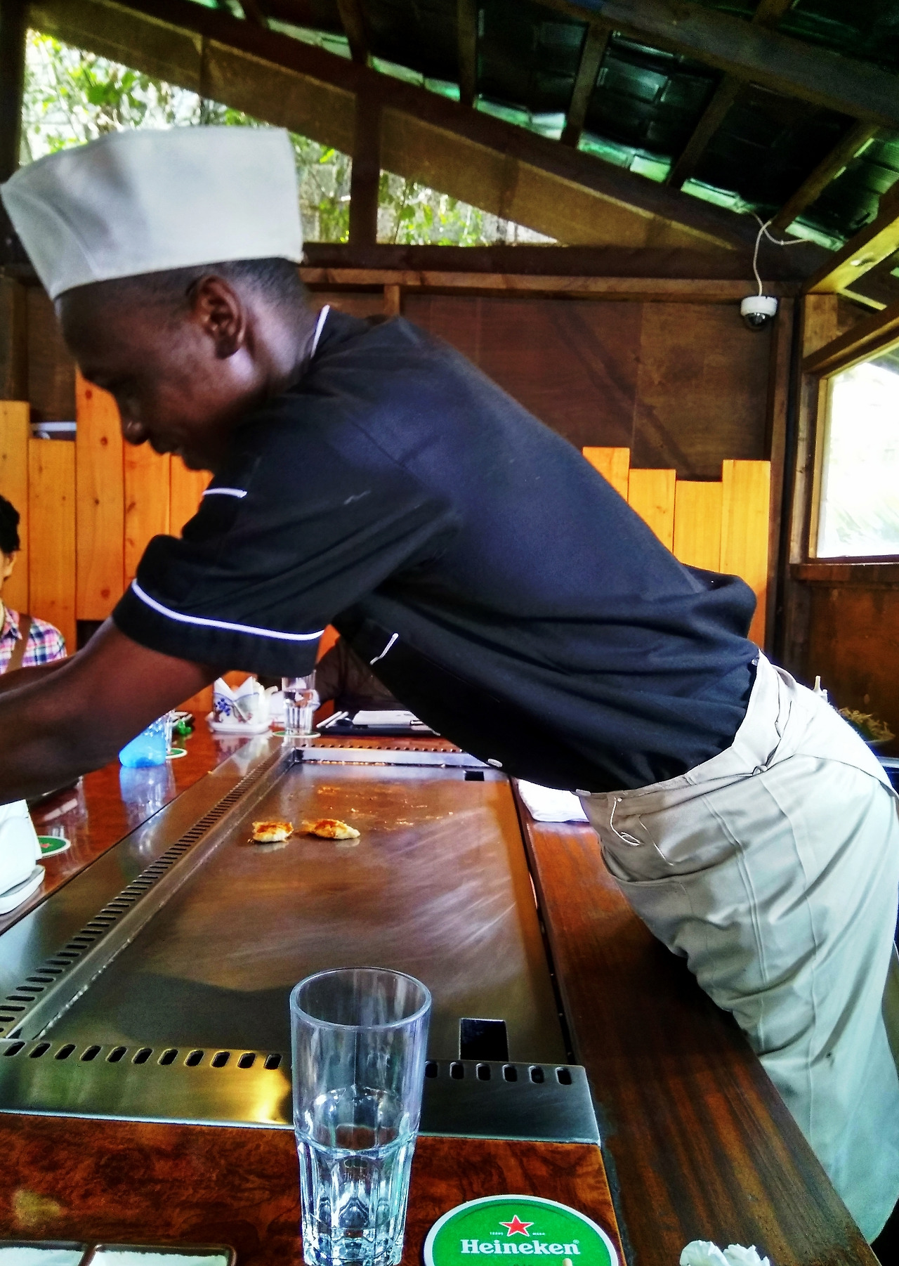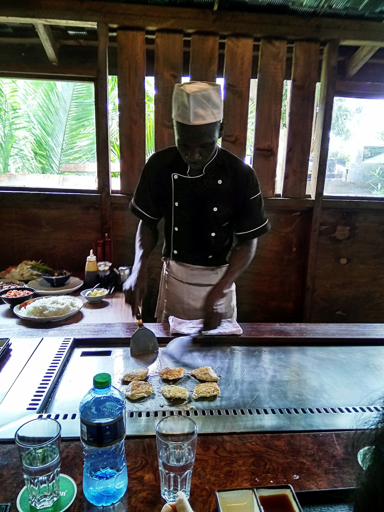 화려한 불쇼는 없었지만 낯설기만 했던 일행과는 이곳에서의 느긋한 시간으로 편안해졌다.무엇보다 현지 아프리카인들이 한국의 예법과음식을 배워 이렇게 서빙을 하는 것에 감동했는데. 앳돼 보이던 셰프는 요리를 우리 앞에서 해내고는 연신 허리를 숙여가며 서빙하는 일이쑥스러운지 수줍어하던 모습이 역력했다.