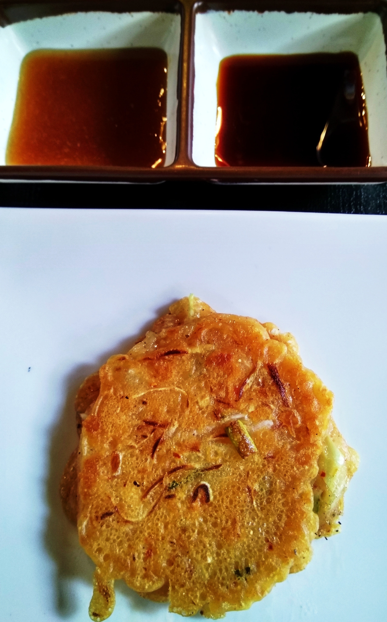 실내로 들어서니 깔끔하게 차려입은 셰프가 마치 성스러운 예식을 거행하듯, 김치 오꼬노미야끼를 노릇하게 구워 접시에 담아주었다. 새우와 야채 튀김은 주방에서 바삭하게 튀겨 한꺼번에 가져다주었는데 먹는 내내 가실가실한 식감에 행복했다.