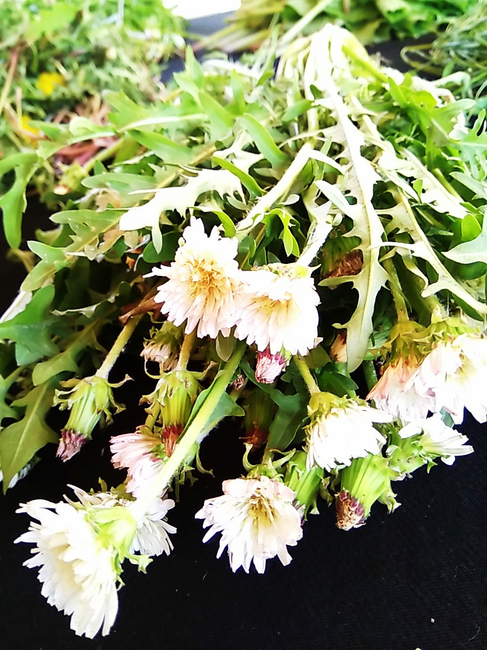 산벚나무가 둘러싸인 그늘에서 자라고 있는 쑥은 연하고 향도 부드럽기 그지없다. 쌀뜨물 이용법이 아직은 익숙하지 않아 생 쌀을 물에불린 뒤 믹서기에 갈아 국물로 쓰니 뽀얗고 구수하다. 집 둘레길을 꽃 길로 만드는 중이라 쑥을뿌리째 뽑아내야 하기에 일석이조의 효과를 노리며 서두른다. 총총 채 썰어 쌀뜨물에 된장을 푼 국물에 먹기 전에 넣으면 파릇한 쑥국이 된다. 흰색 민들레는 그녀가 특히 좋아하는 야생초다. 대문 앞에서 뿌리째 다섯 포기 정도를 뽑았는데, 아마도 그녀는 아파트 옥상 화분에 흰민들레뿌리를 심어 두고 꽃과 잎을 즐길 것이다.