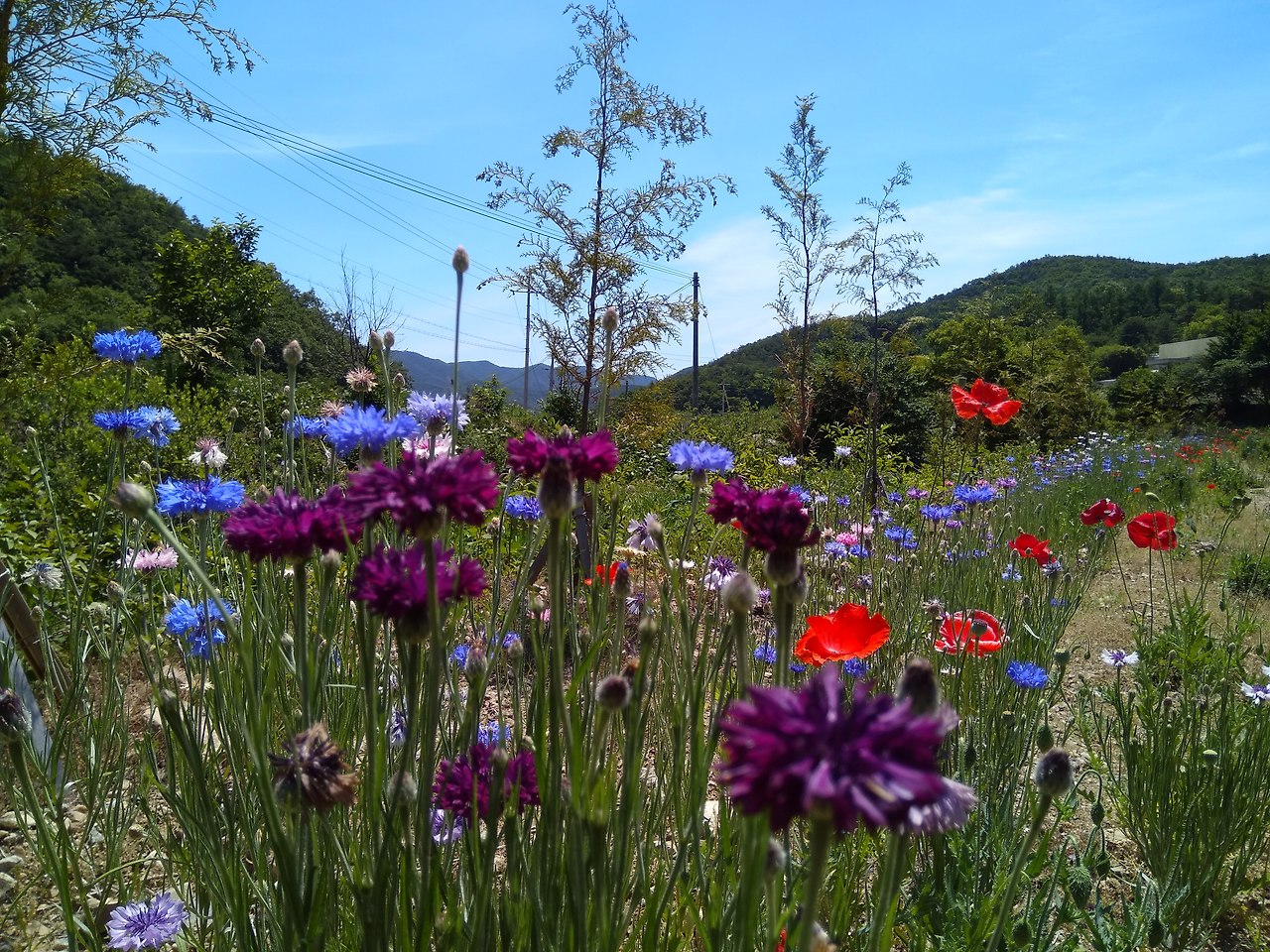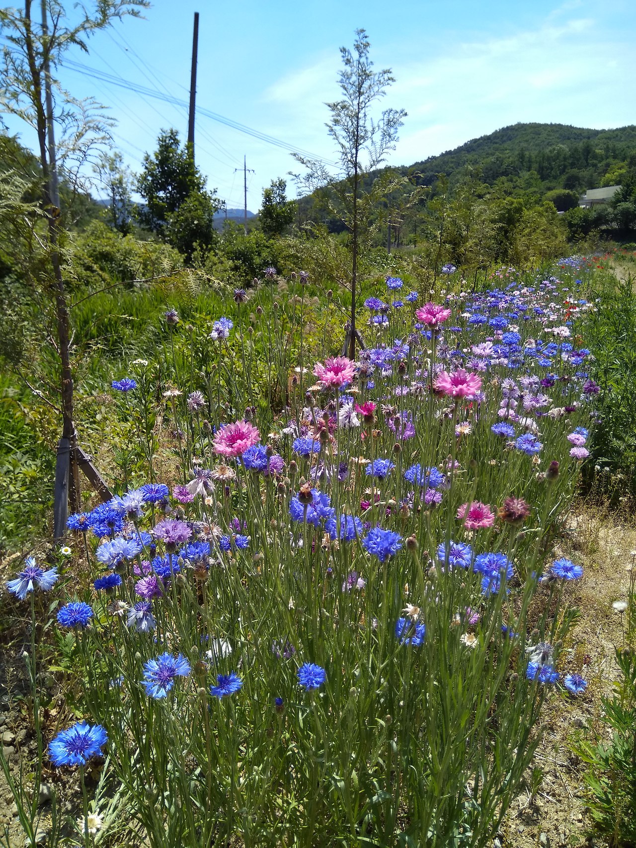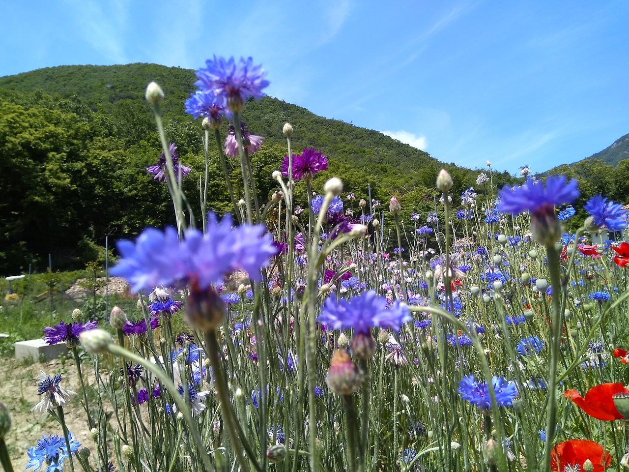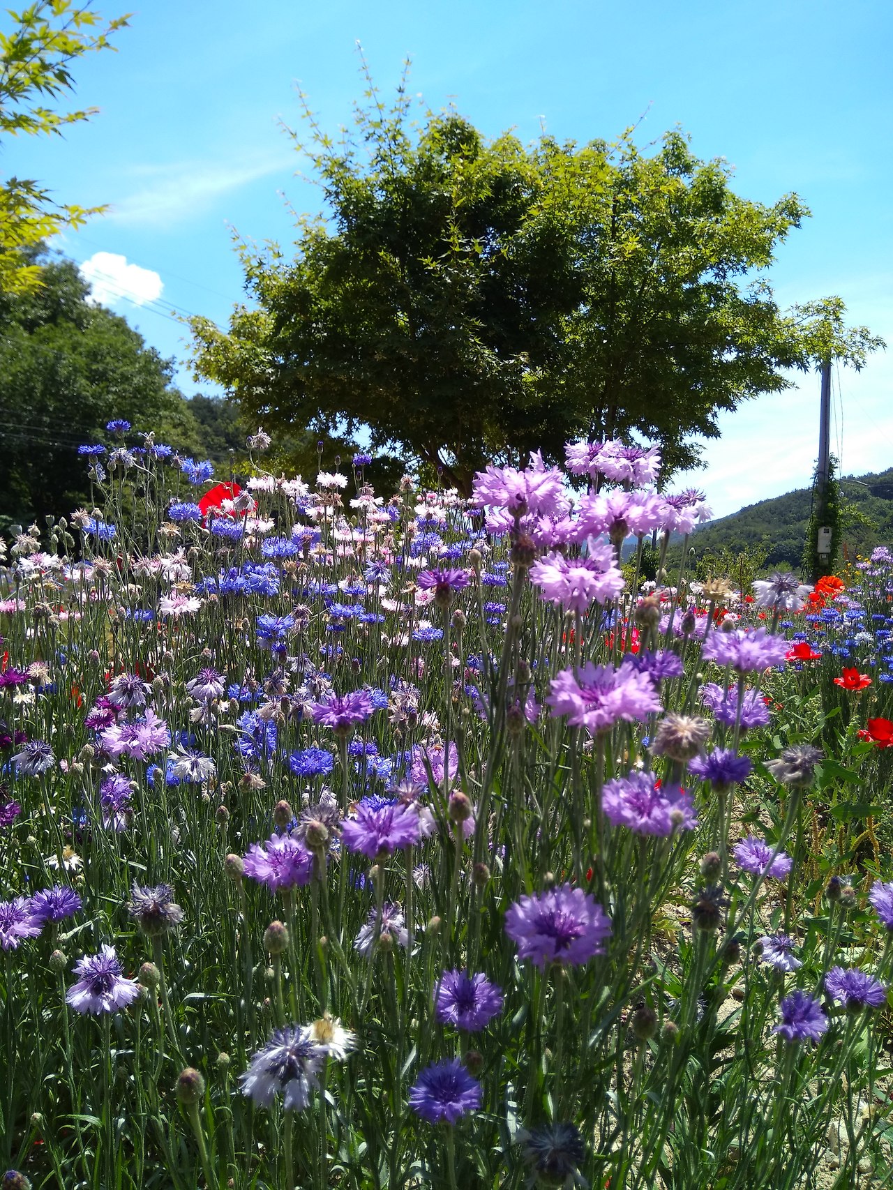 어느 날부터 감감했던 집 둘레 길에서 언제 키를 키우고 가지를 불렸는지 보라와 청, 자주와 분홍, 순백과 진분홍 색으로 수레국화가 피어났다. 눈으로 보이던 것만으로 판단을 내렸다면어찌 되었을까? 그 땅을 정리하고 다른 걸 심거나, 물 공급이 기능한 쪽으로 옮겨 심었다면 이 단단한아름다움을 볼 수 있었을까?