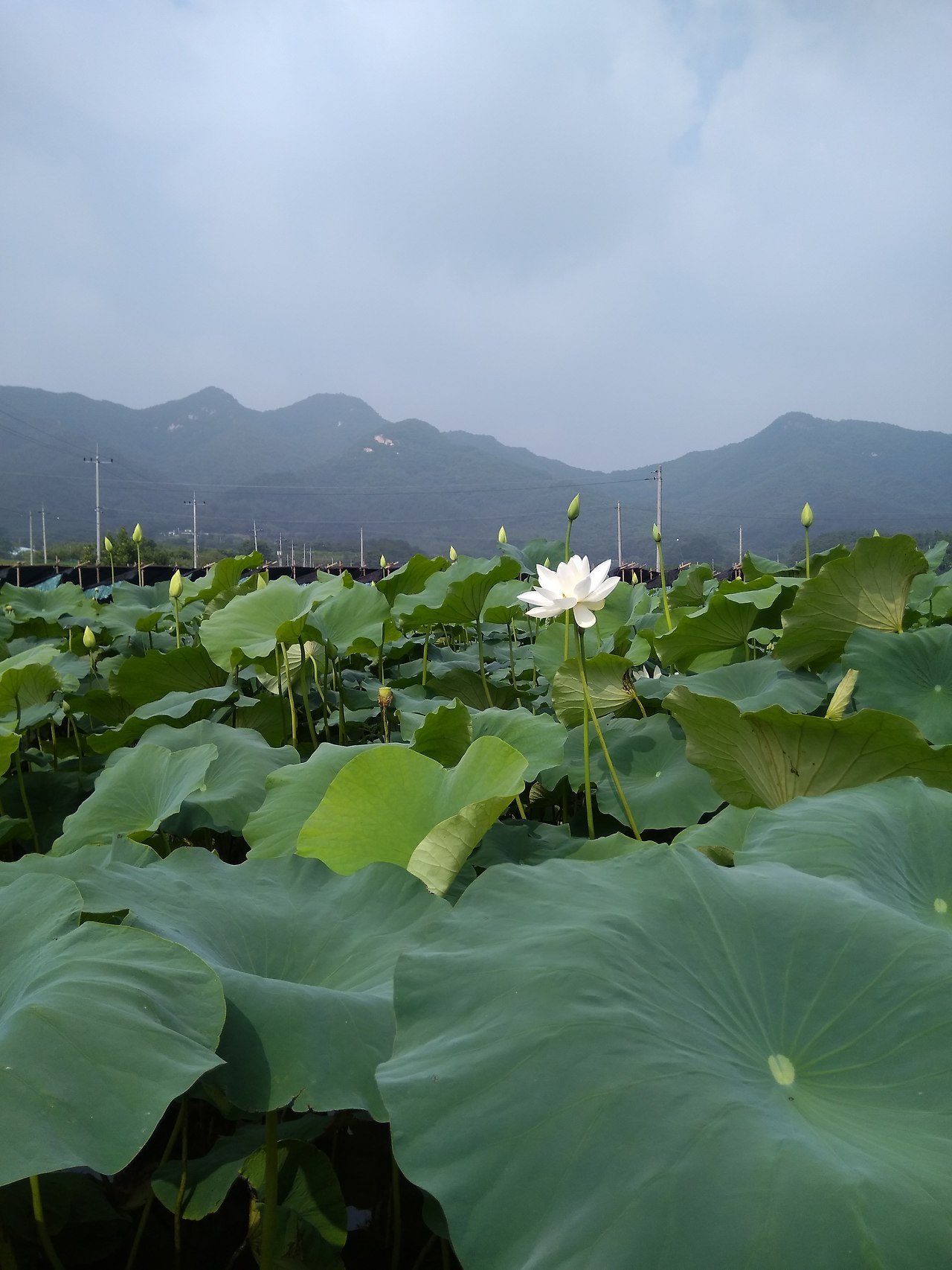 자주 이용하던 길이었지만, 작년에 넓고 시원한 도로가 개통되면서 시내 가는 시간을 반으로 줄일 수 있어 잊었던 도로였다. 일부러 향한 그곳에 오늘 흰 연꽃이 피어나 있다. 논 둑을 뛰어다니며 연밭을 둘러보다 어느 지점에서 나는 조용히 앉았다. 그동안 여러 번 연꽃과 연단지 들을 구경했지만 이리 홀로 백련을 마주하긴 처음이다. 평화로움과 신성함이 밀려드는 찰나였다.