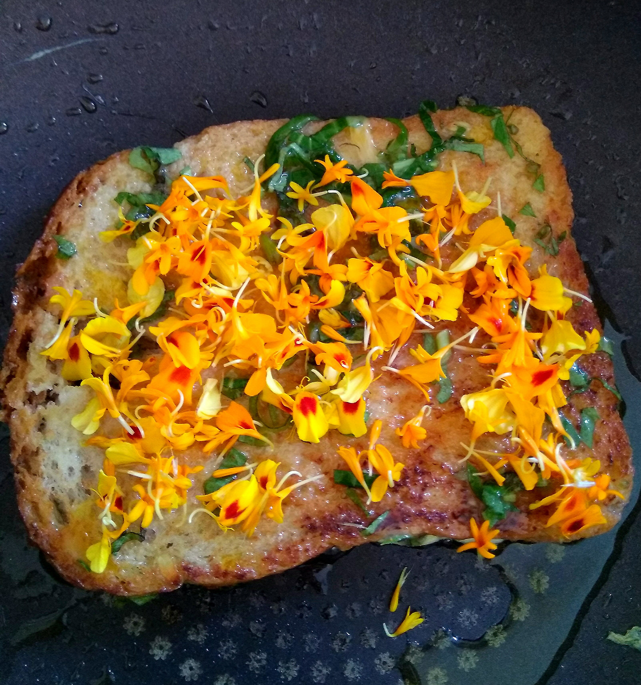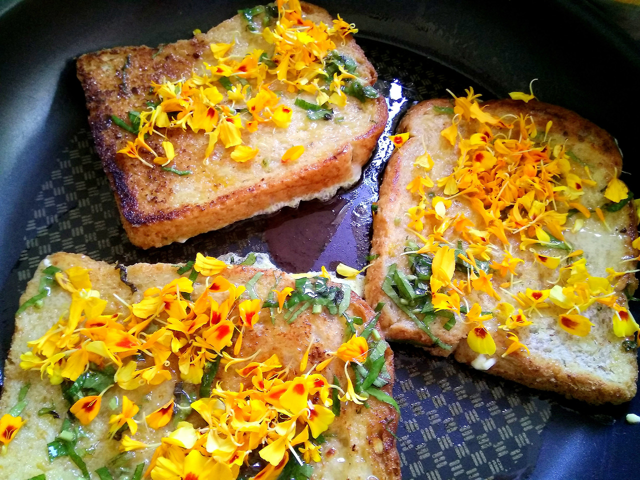 메리골드 꽃잎을 듬뿍 올려 익혀내면 신선한 꽃