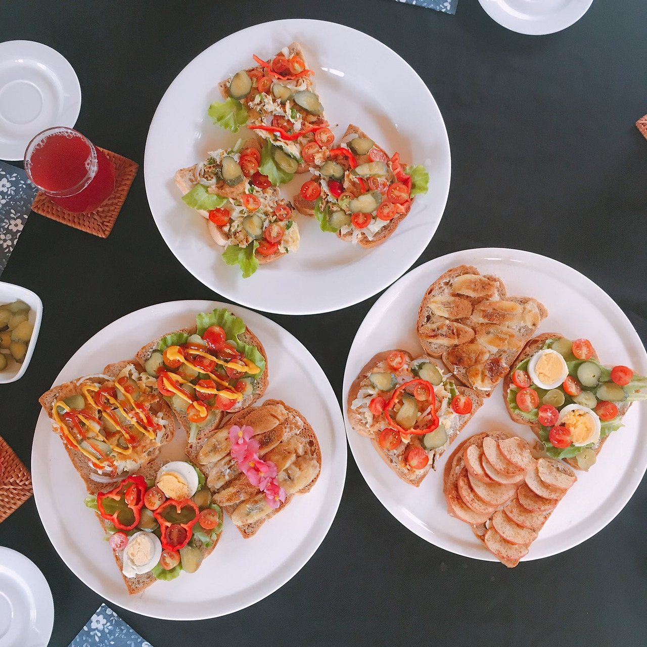 오늘은 달궈진 펜에 빵을 구워낸 뒤 삼엽 국화잎