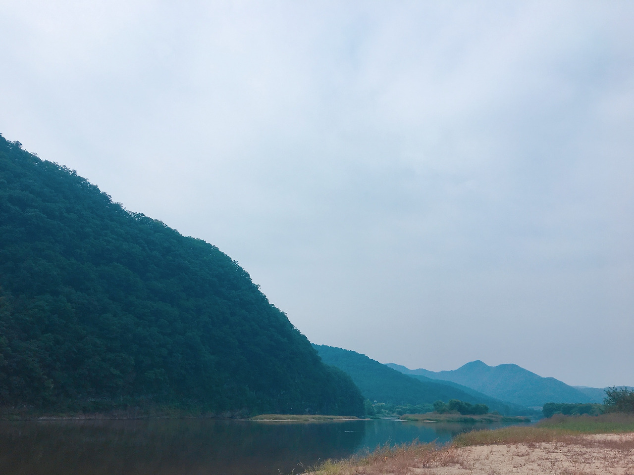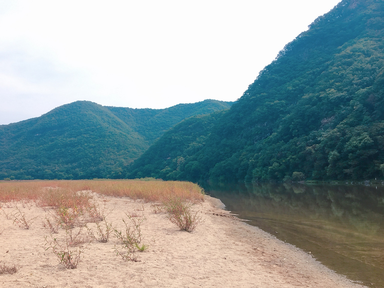 가족은 병산이 둘러싸인 아랫 강을 어슬렁거리며