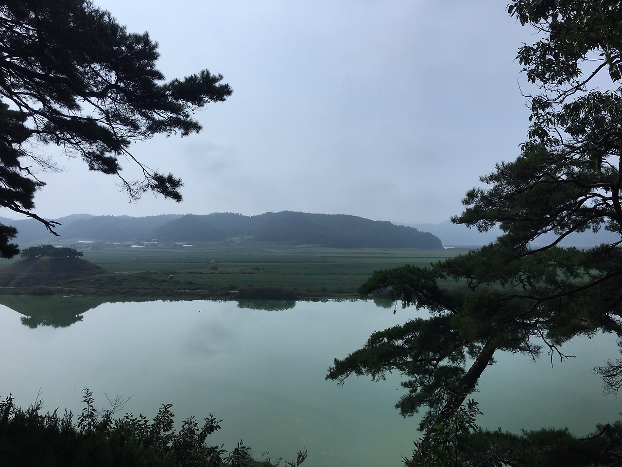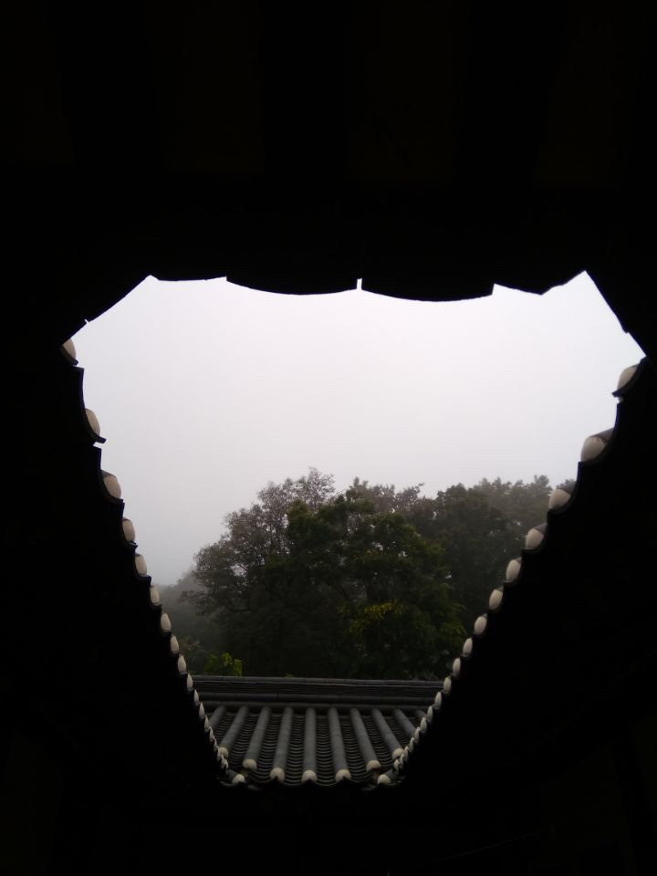 출입금지가 된 눈 앞의 만대루와 그 너머 병풍을