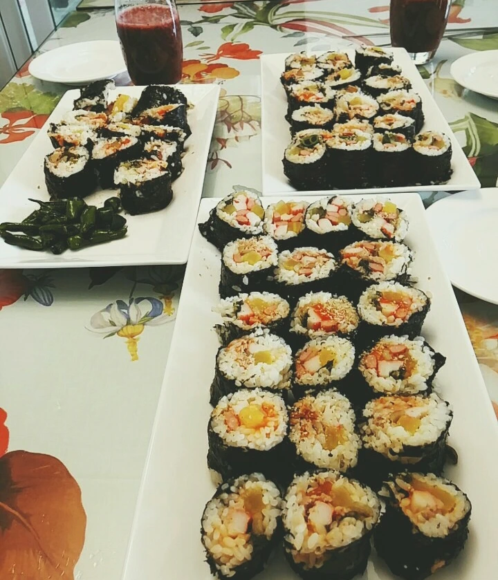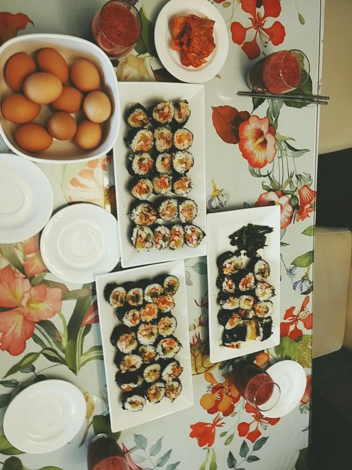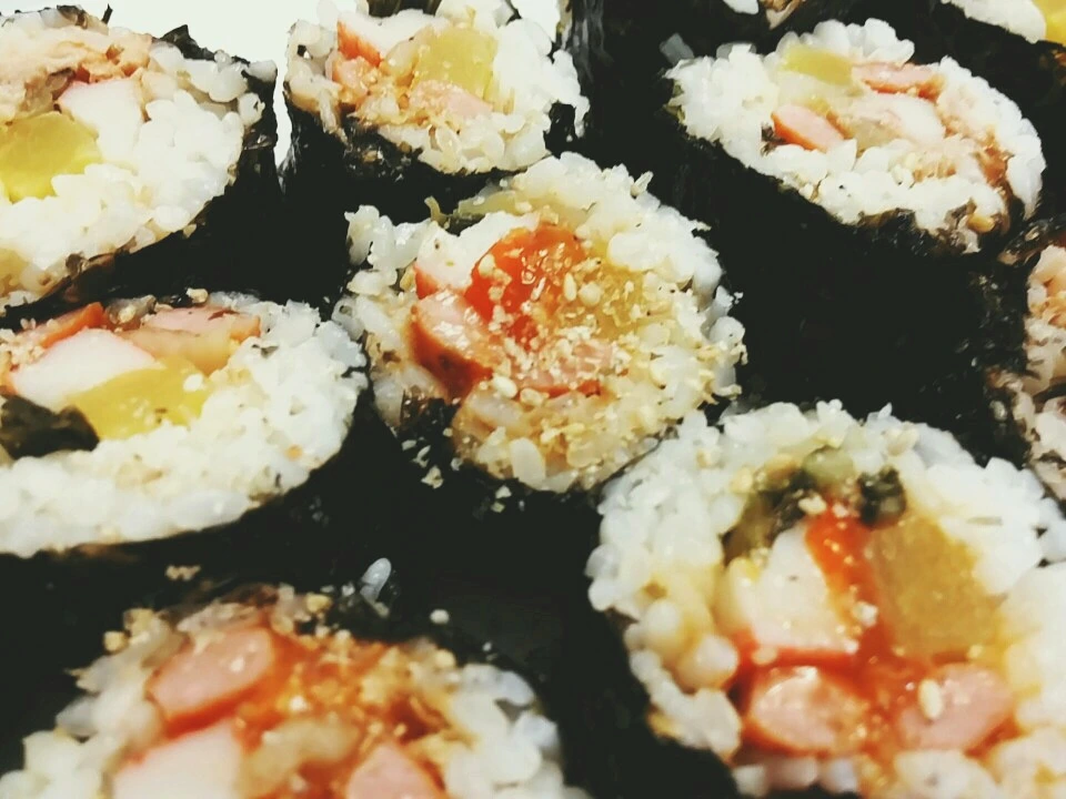 우엉김밥 대신 홍시김밥과 텃밭의 토마토