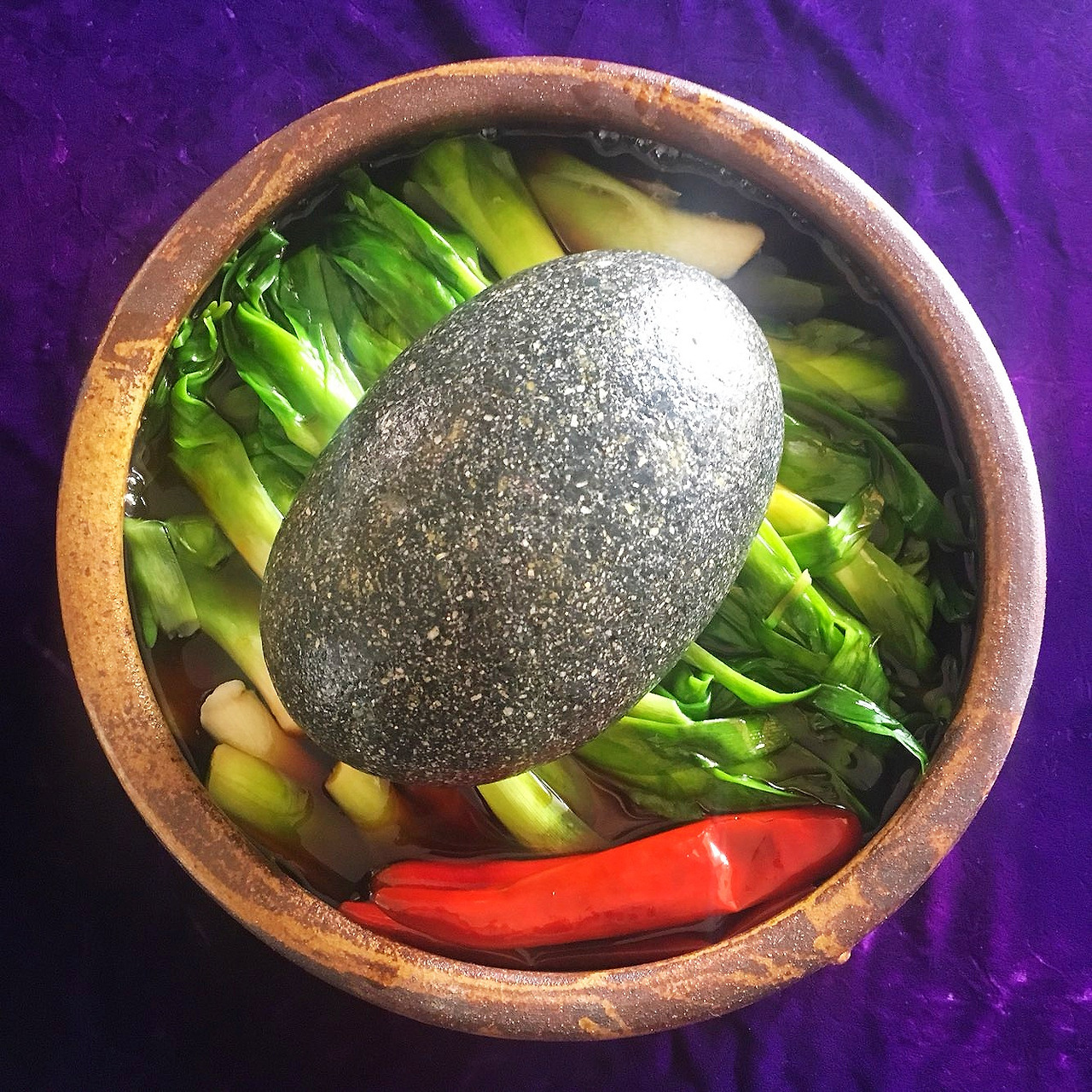 공룡알로 불리는 돌멩이는 수시로 정원에놓였다가 부엌으로 불려 온다. 소독을 위해 끓는 물에 끓여 내놓으면 한동안 식지 않는다. 거기다 가만히 손을 얹어보면 온 몸이 돌의 열기로 뜨끈해진다. 실제로 지난겨울 몸살이 났을 때 이웃이 밥솥에 돌을 데워 나의 배와 등에 번갈아 올려 주며 치료 효과를 보았던 행복한 기억이 있다.