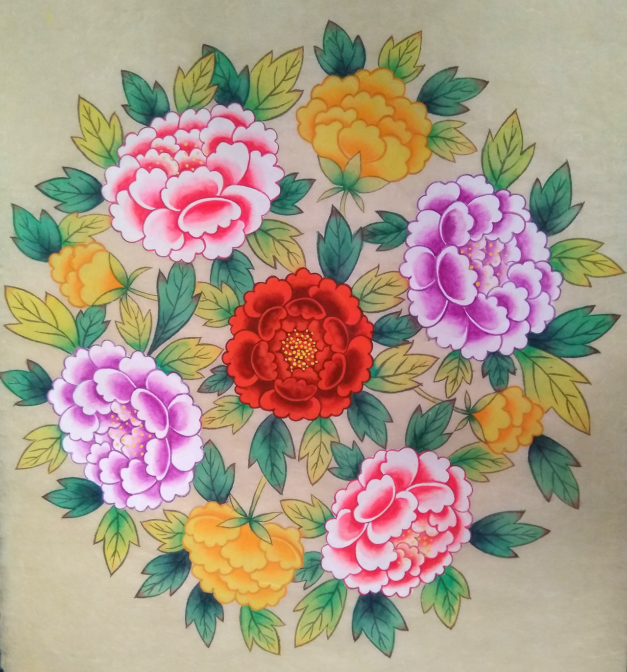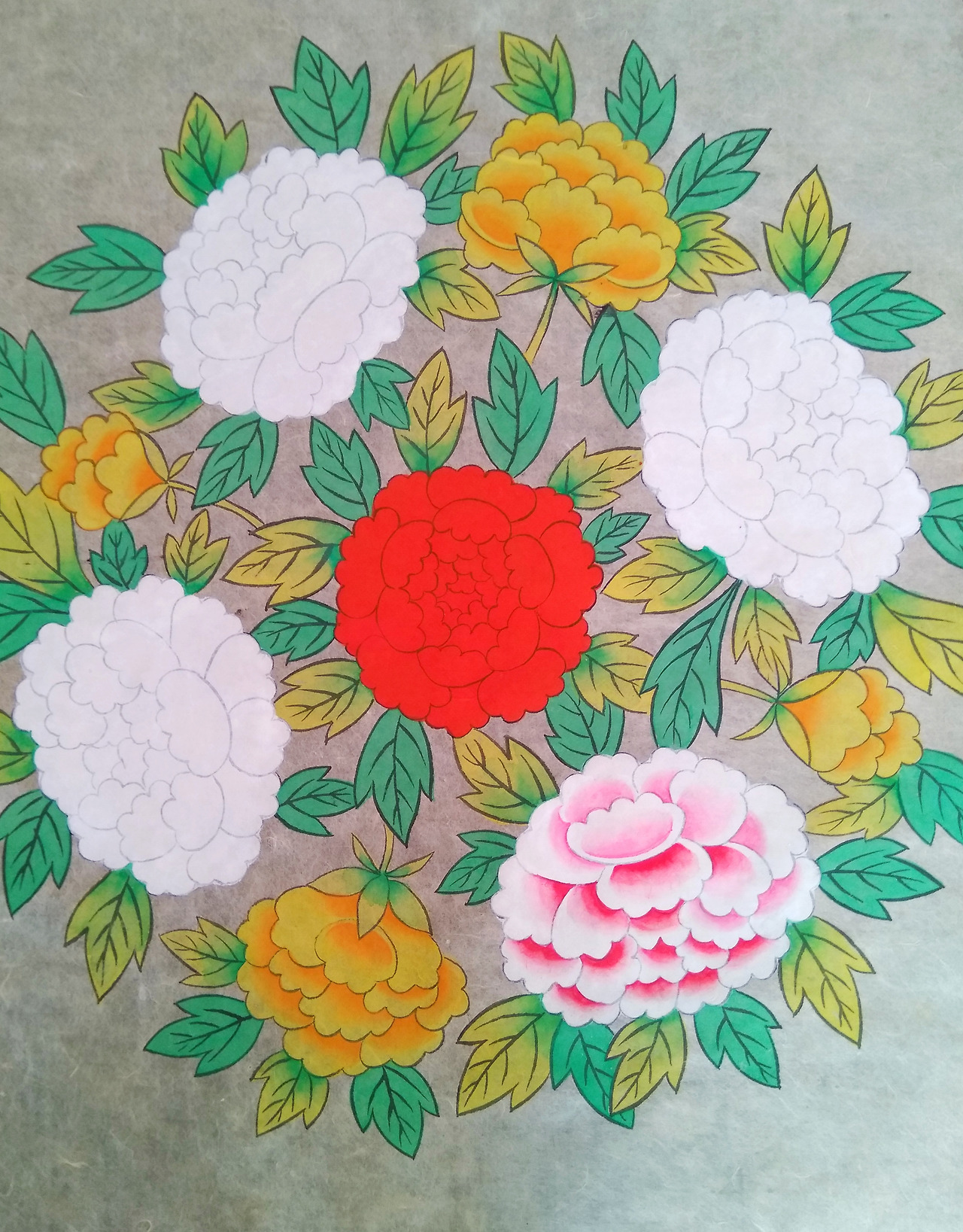 텅 빈 백지에서 마음으로 그리던 모란 다발이