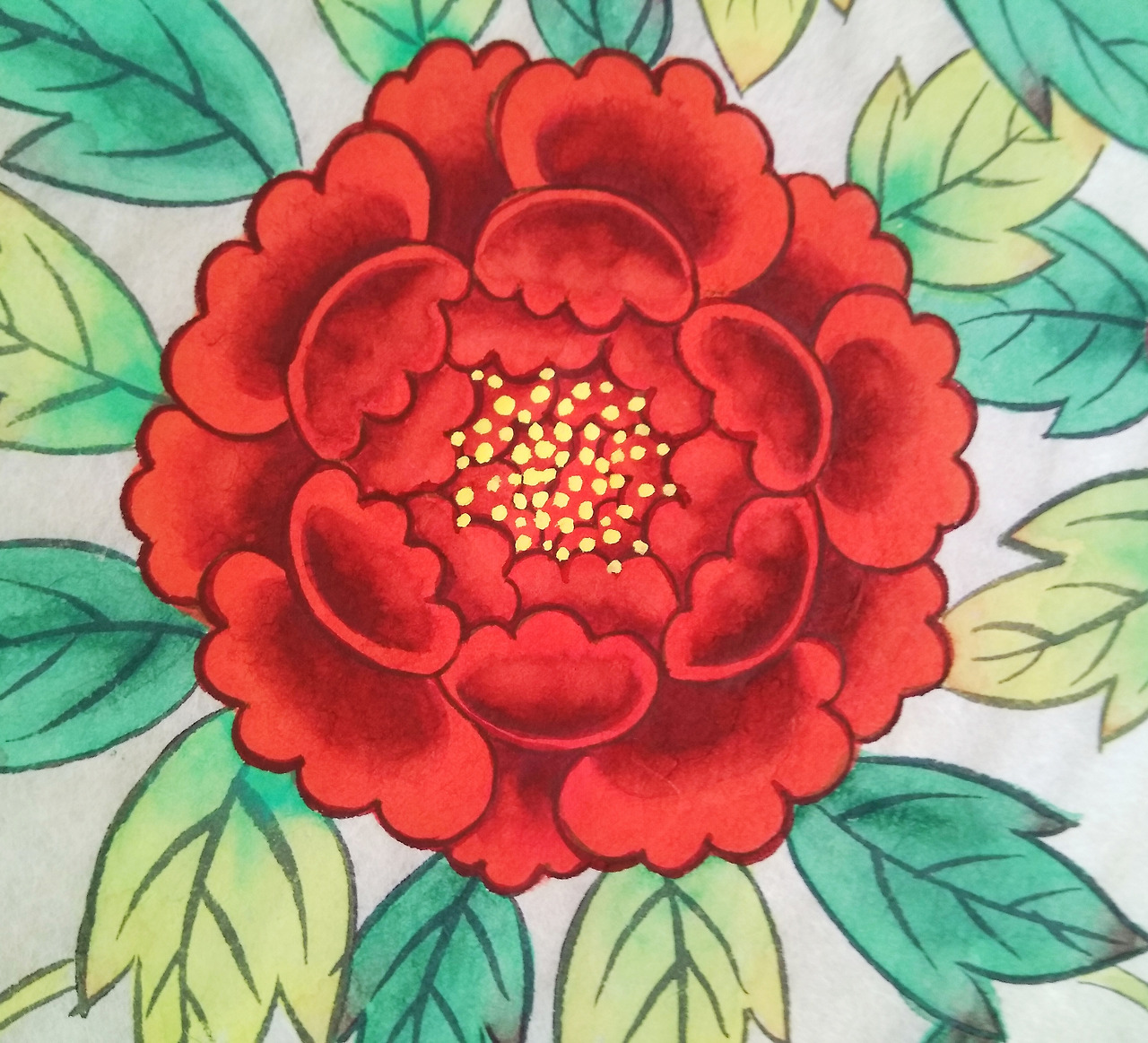 번 겹쳐 칠하다 만나게 된 색과 꽃 한 송이
