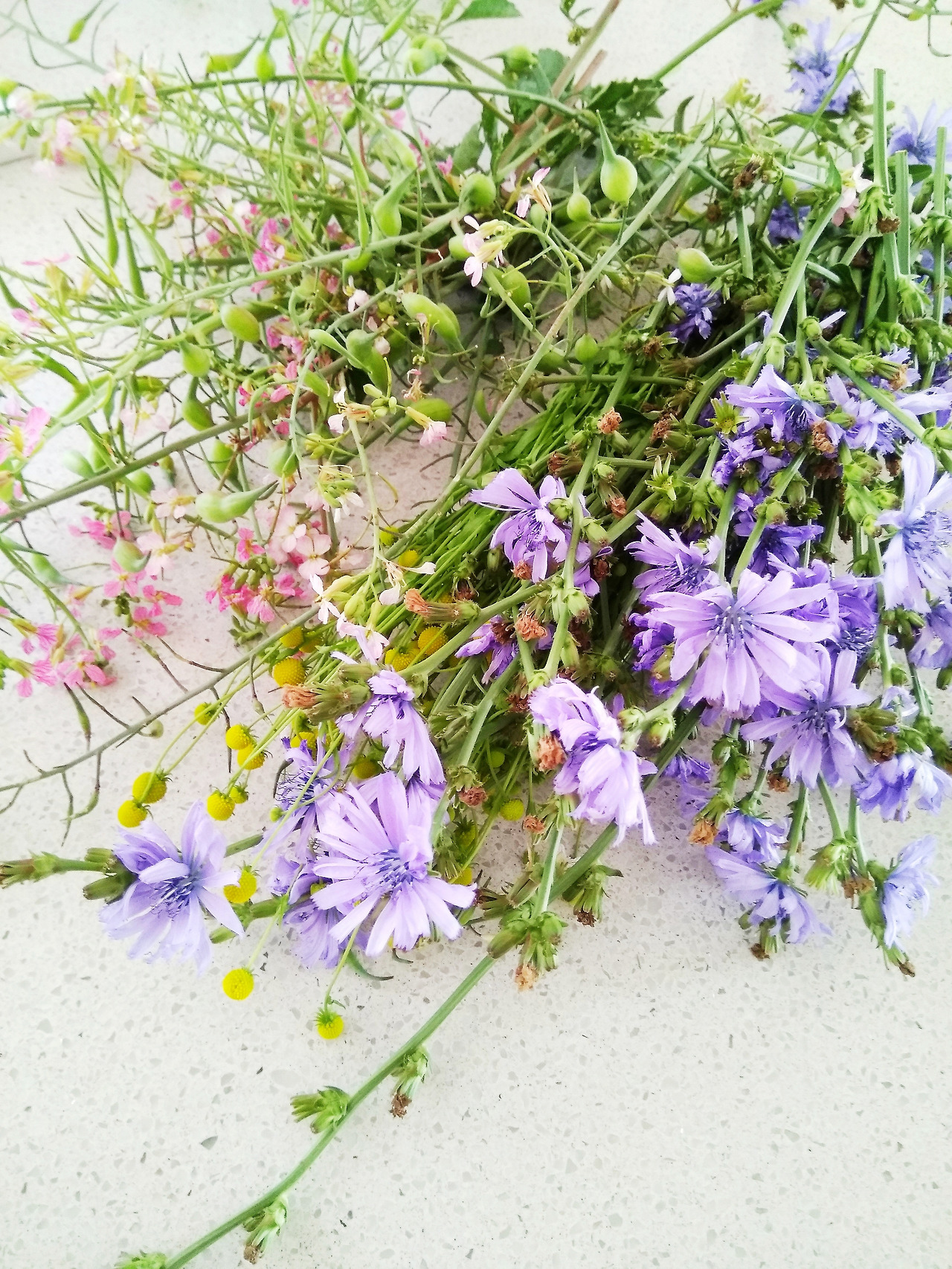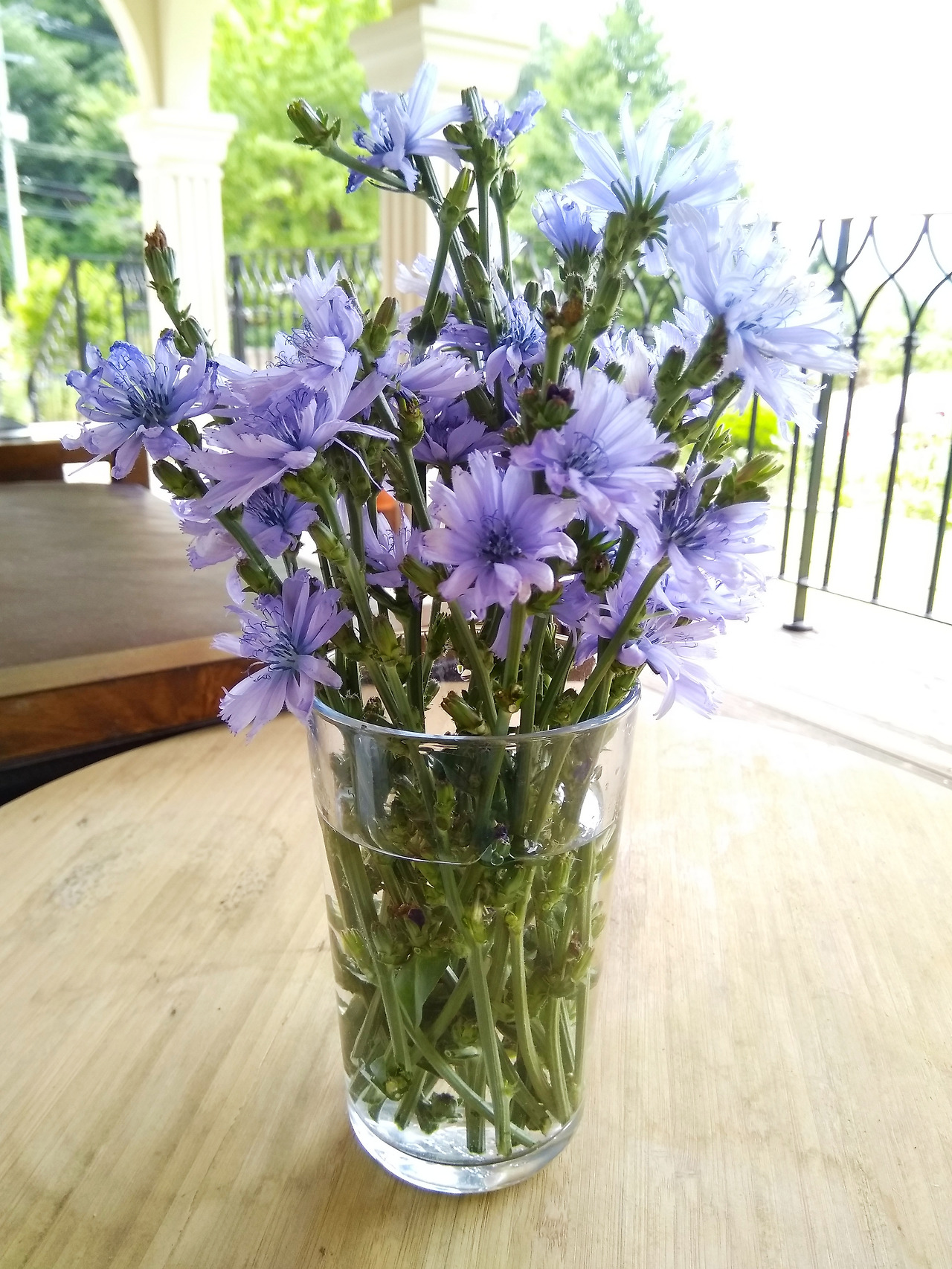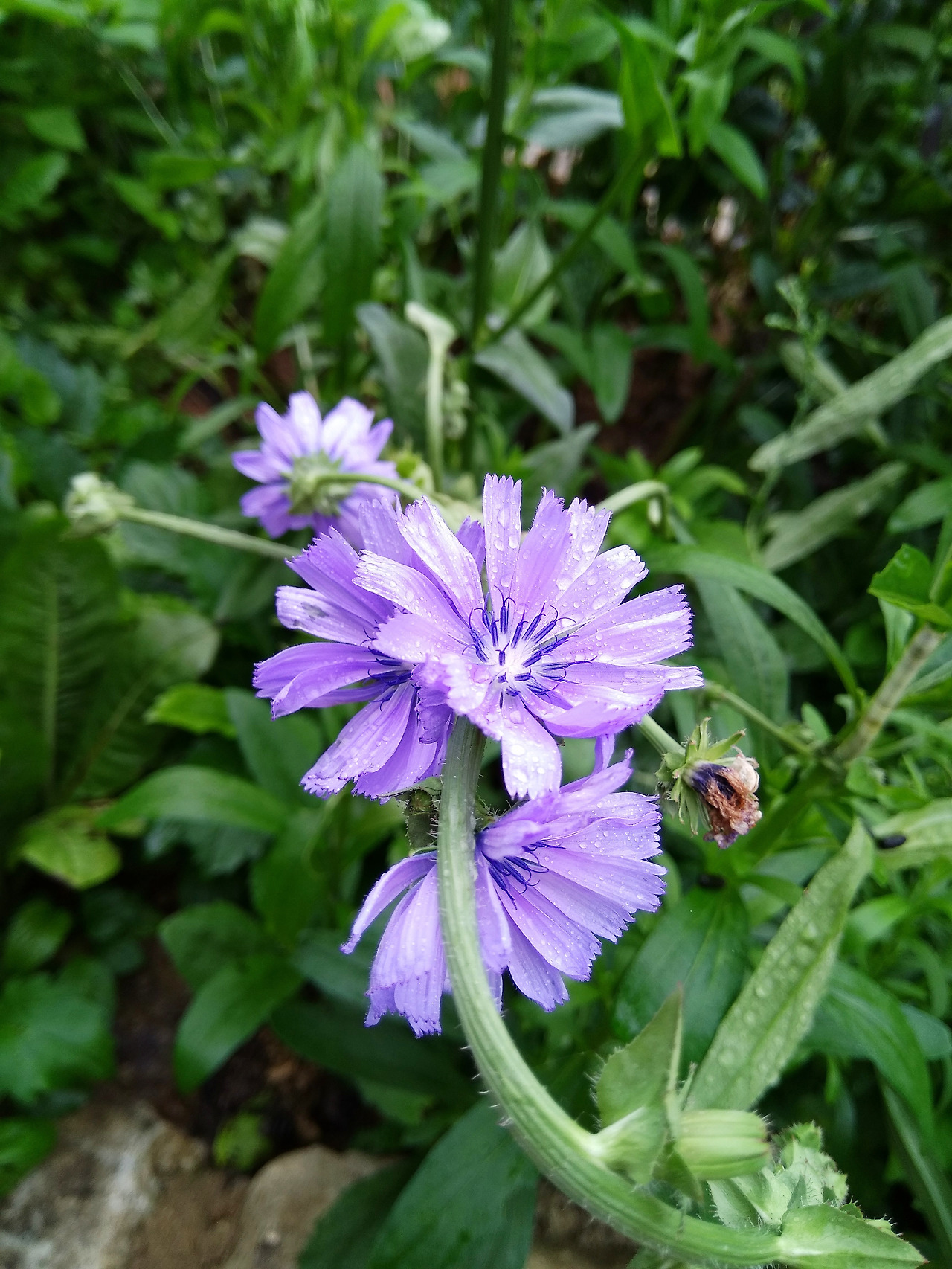 쌈 채소 치커리의 연보라 꽃은 가지치기를