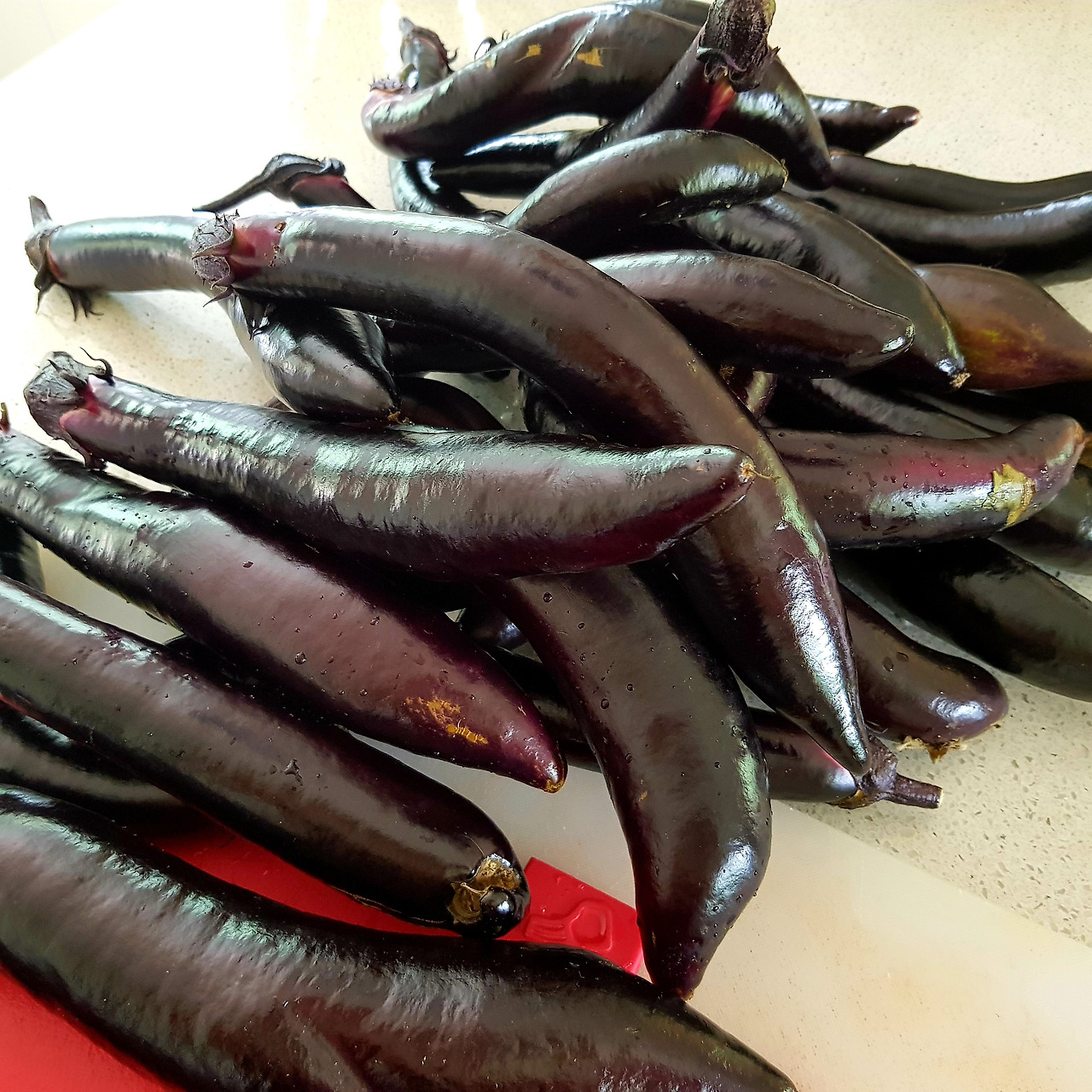 동글이 가지는 크고 식감이부드러워 샐러드나 생체로도 쓴다. 올해는 감자와 양파가 얼마나 풍년인지? 가지구이에 새로운 재료 한두 가지를 더하고 빼면서, 일주일에 대여섯 번 '감자 가지 치즈 구이'를 한 달 이상 먹고 있다. 무른 가지 식감을 좋아하지 않는 내가 요즘 가지를 즐기는 법은 바로 이것.