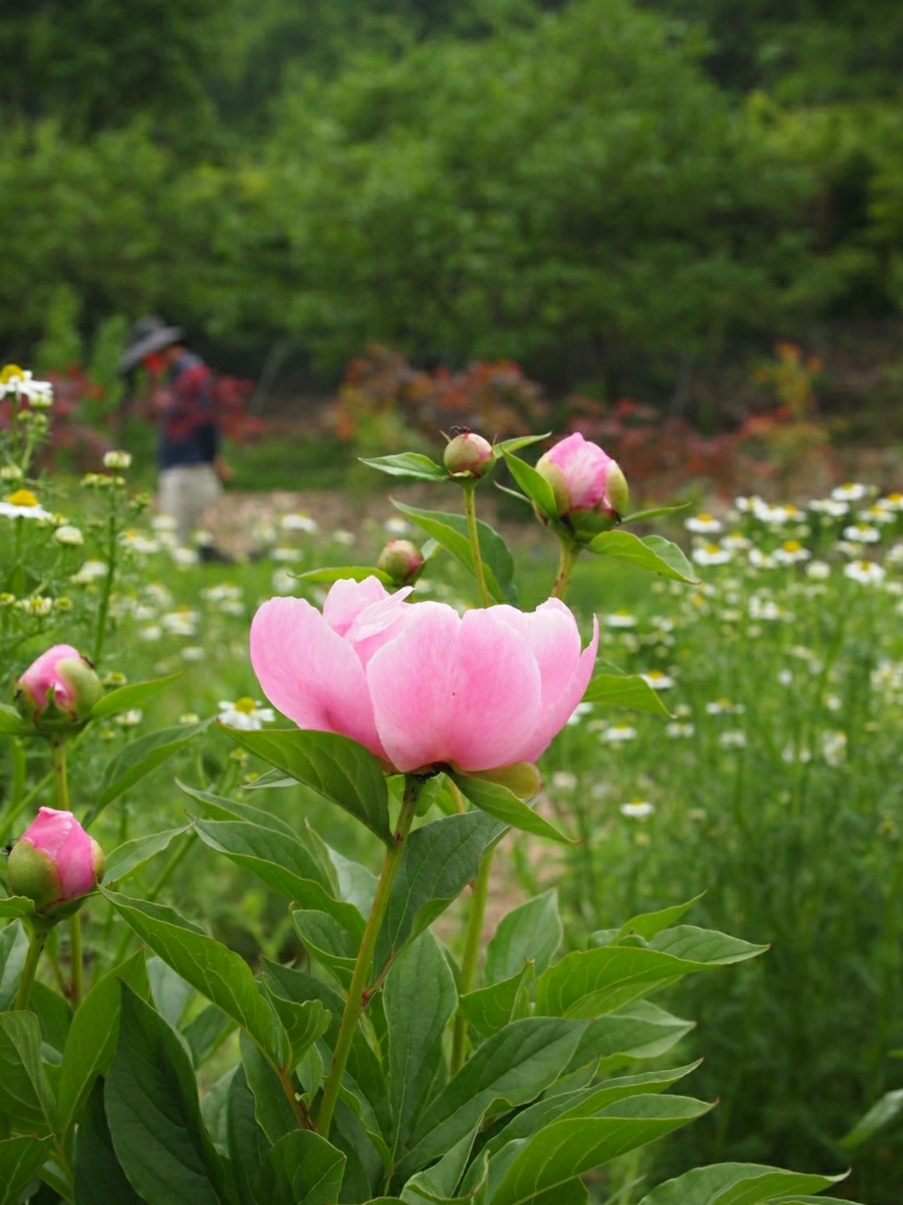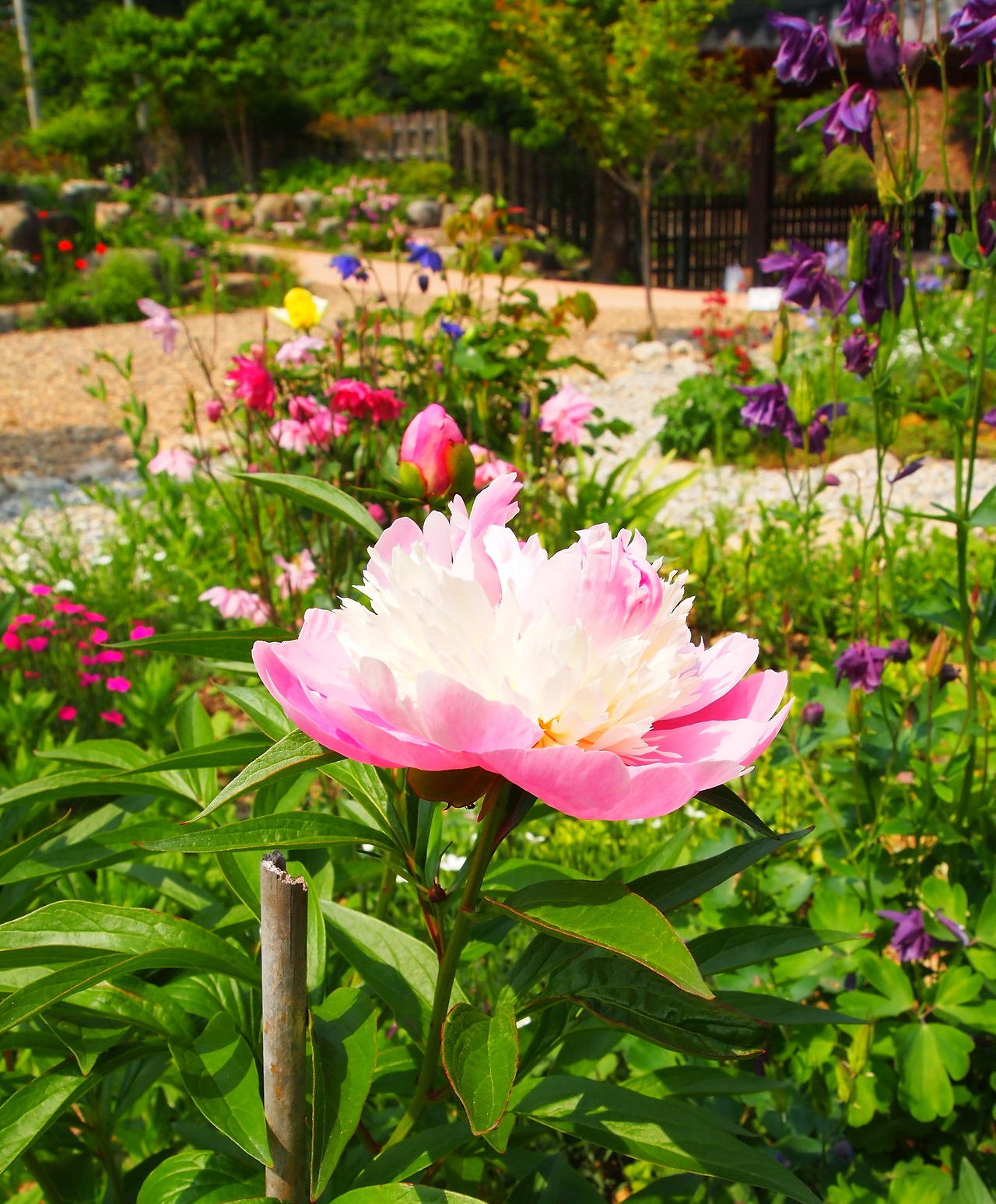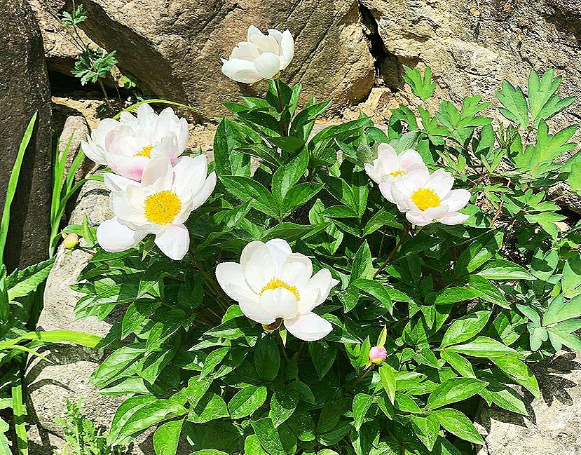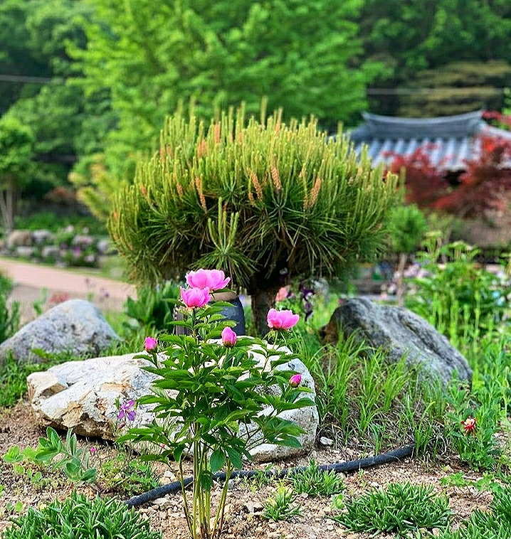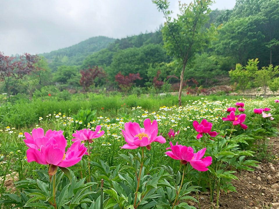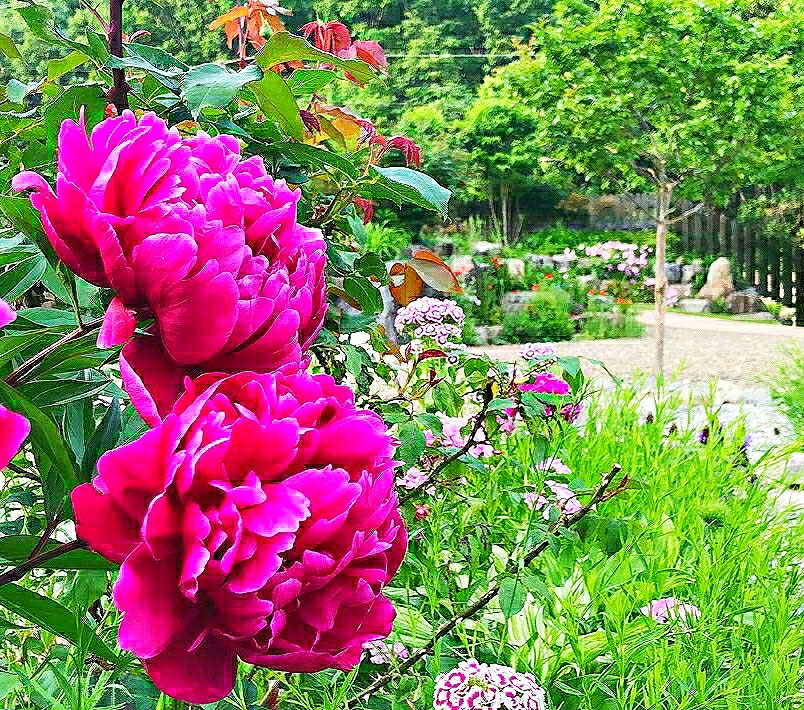 암석정원으로 가봐도 천지가 작약이다. 웃음을 안기는 토끼 같은 작약도 있고, 인터뷰를 기다리듯 봉우리를 앞으로 쑥 내민 것도 있다. 산 할아버지 긴 눈썹처럼 흰색 꽃잎이 중간에 동그랗게 둘러진 것도 있다.