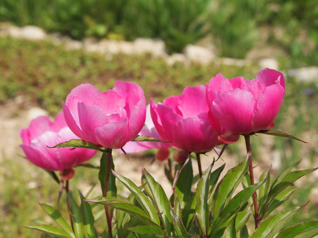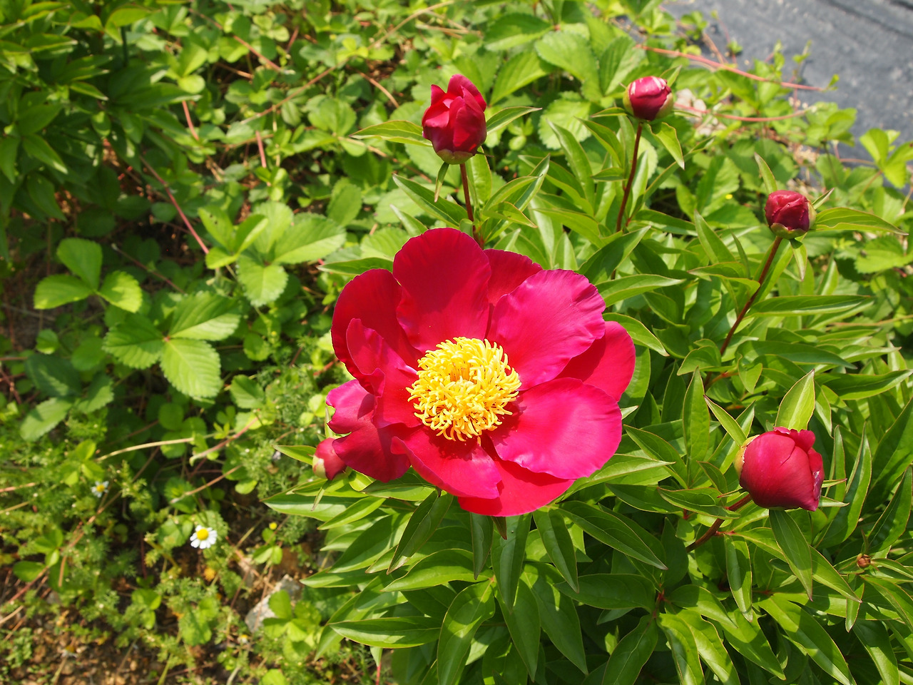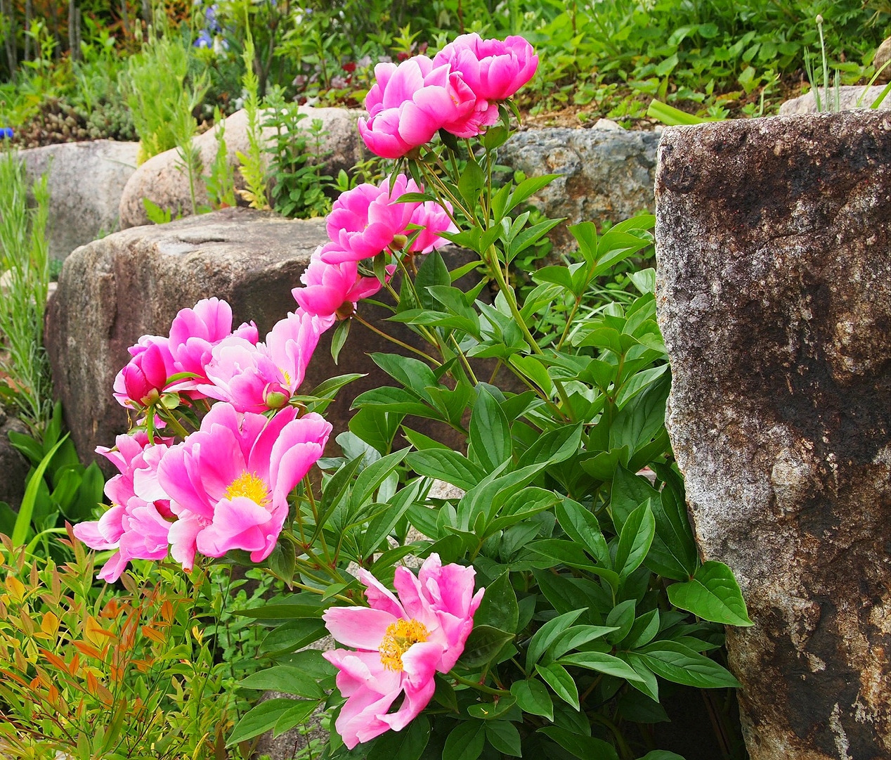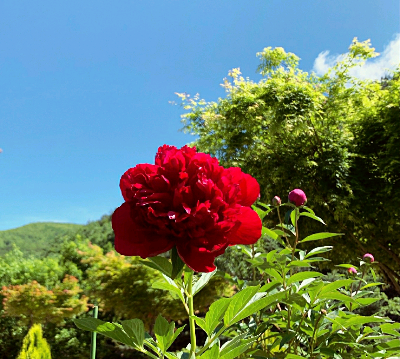 암석정원으로 가봐도 천지가 작약이다. 웃음을 안기는 토끼 같은 작약도 있고, 인터뷰를 기다리듯 봉우리를 앞으로 쑥 내민 것도 있다. 산 할아버지 긴 눈썹처럼 흰색 꽃잎이 중간에 동그랗게 둘러진 것도 있다.