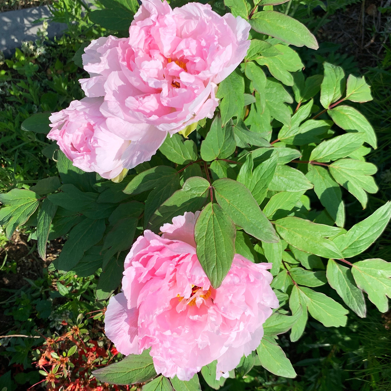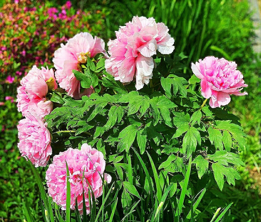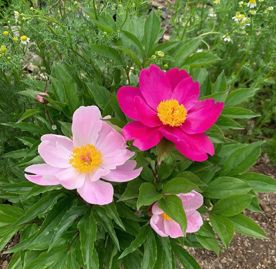 37개의 작약 구근 덩이를 일렬로 심은 지 3년 만에 적잖게 불어났다. 작약 옆 흰색 카모마일이 어울리는 배경을 만들어 주었는데, 엄청난 양의 카모마일은 쓱쓱 잘라 건조기에 말려 차를 만들었다. 바로 그 자리에 잔가지를 낸 카모마일이 다시 피고 있다. 화사한 연분홍과 진분홍 작약이 함께 흔들흔들! 설레는 풍경이다.