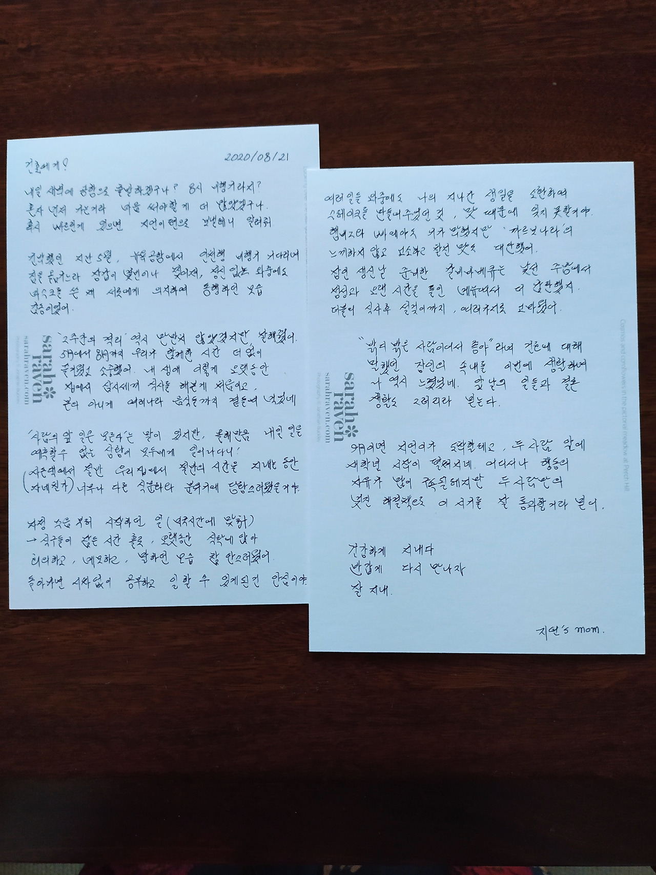 열흘 후면 지언이도 갈 거고, 두 사람에게 9월 새 학년이 펼쳐지네. 한동안 어디서나 행동의 자유가 제약될 테지만 두 사람만의 멋진 해결책으로 이 시기를 무사히 잘 통과할 거라 믿어.