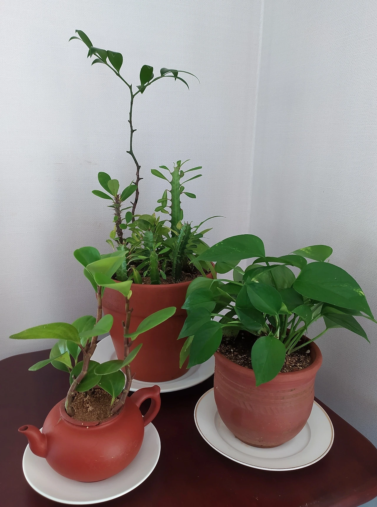 봄이면 대부분의 화분을 밖으로 내놓는다. 비워진 공간으로 인해 속이 시원해진다. 몇몇은 주차장 문을 지키게 하고, 어떤 것들은 느티나무, 단풍나무 그늘 아래에서 자연의 빛과 비, 그늘을 받으며 늦가을까지 있게 한다. 밖에 두었던 화분들은 추위가 오면 다시 집 안으로 들인다. 빈 공간보다 뭔가 푸릇함이 채워진 공간 11월은 따뜻해서 좋다. 볼성사납게 뻗친 가지들을 잘라 물꽂이를 한다. 찬 기온 때문에 식물대나 물이 쉽게 상하지 않아 관리가 쉽기 때문이다.