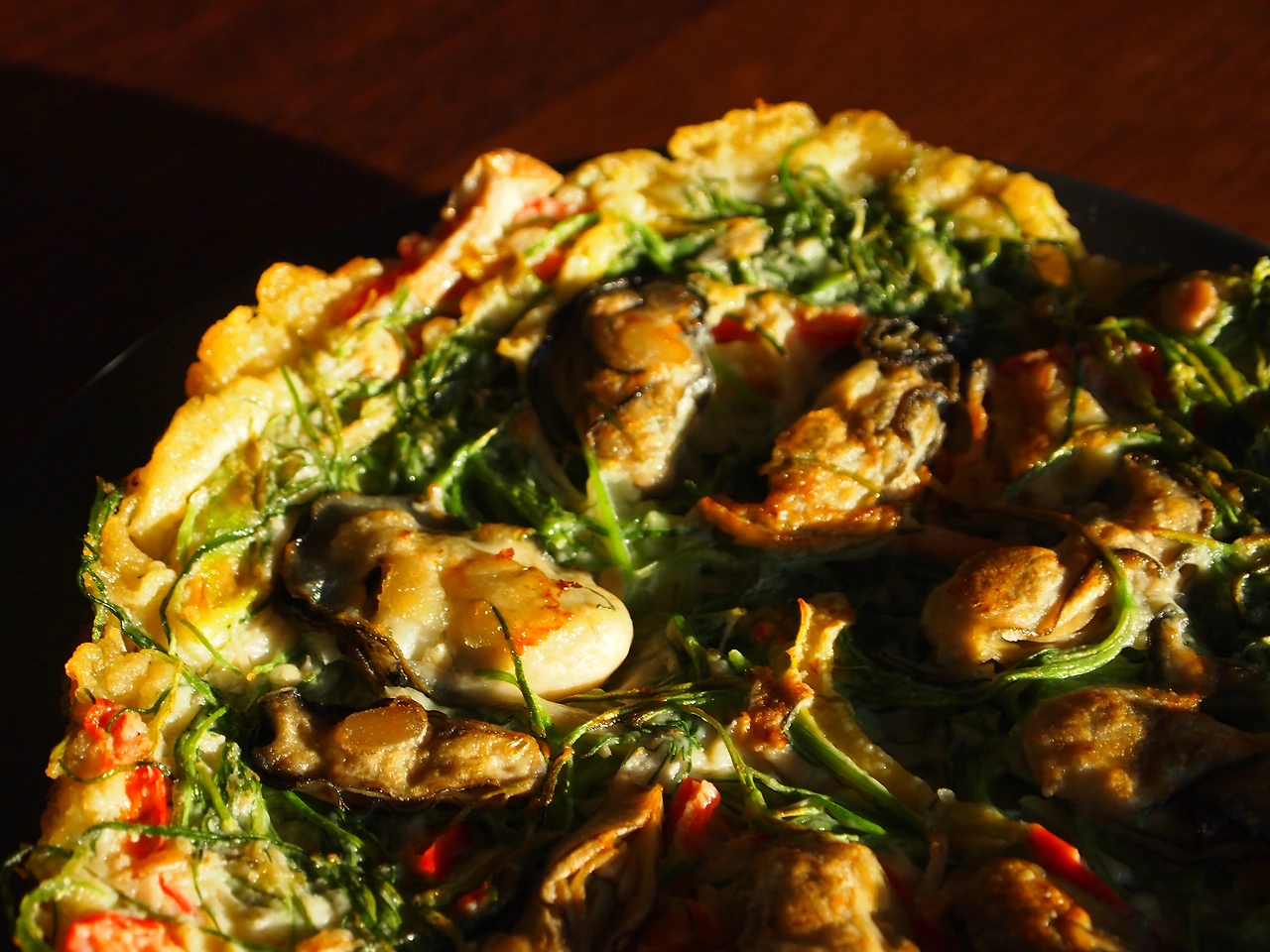 처음 굴을 즐기기 시작했을 땐-얼음 위에 반굴을 올려두고 레몬을 뿌린 뒤 와인과 마시며 사람들과 친교를 다졌다. 정기적으로 갔던 뷔페 레스토랑에서도 굴이 채워지기 무섭게 먹었다. 하지만, 어느 나라에서도 통통하게 알이 찬 싱싱한 생 굴은 만나기 어려웠다. 본래의 재료로 승부수를 띄우기 어려우니, 굴에 치즈를 올려 오븐에 굽거나, 향채와 양파, 토마토, 레몬으로 화려한 색을 올린 것 등등. 아니면 진주가 나오는 관광지 굴이었거나!