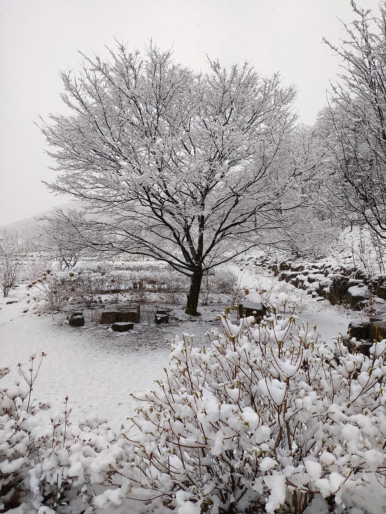 아침에 창을 여니, 여느 해와는 다른 포슬포슬한 봄 눈이 흰나비의 날개처럼 내리고 있다. 더 이상 눈 내리는 풍경을 찍지 않았던, 코비드-19 기간이었다.