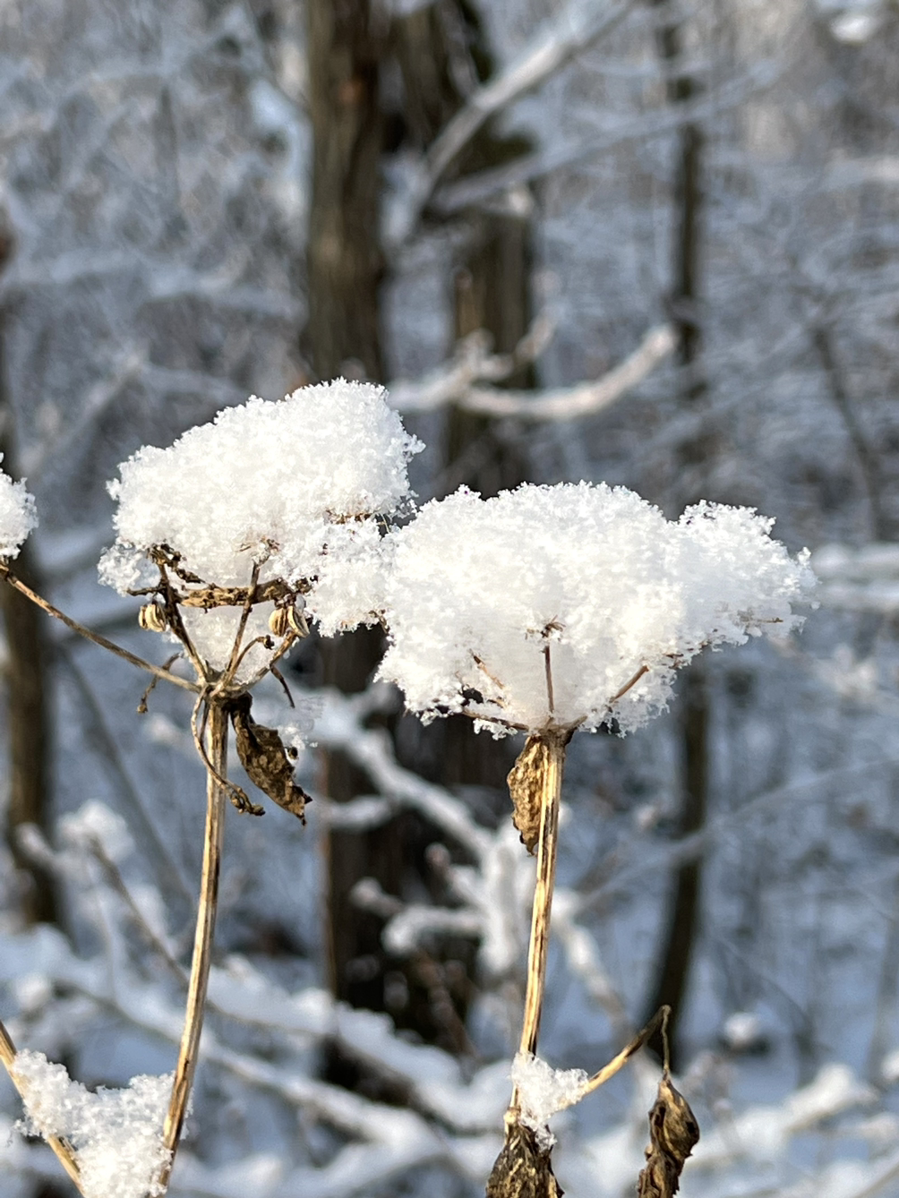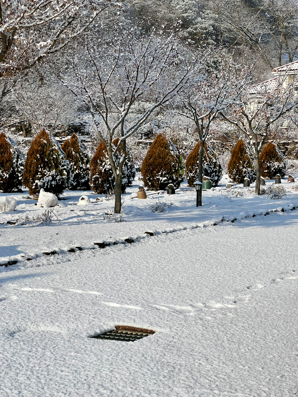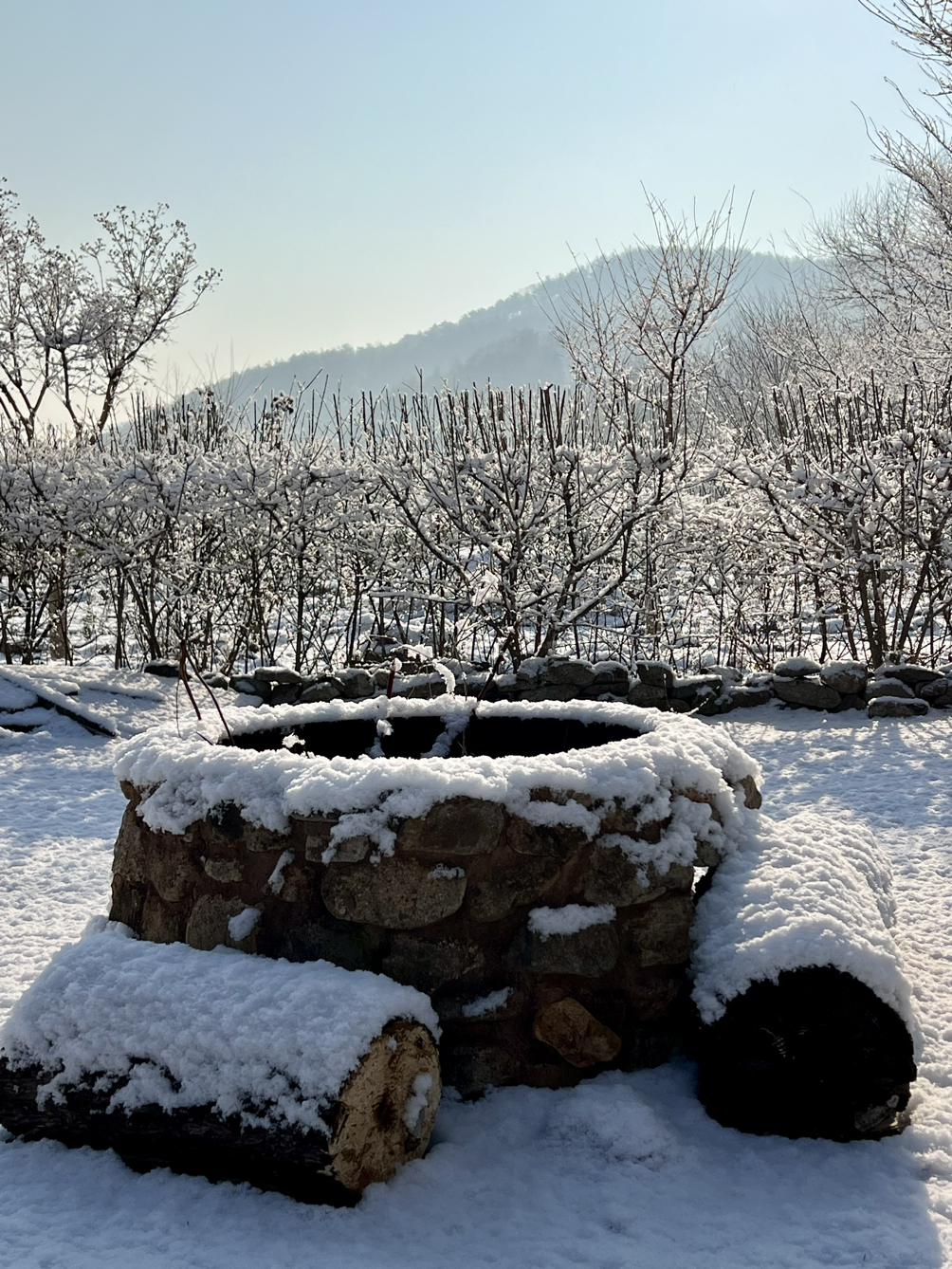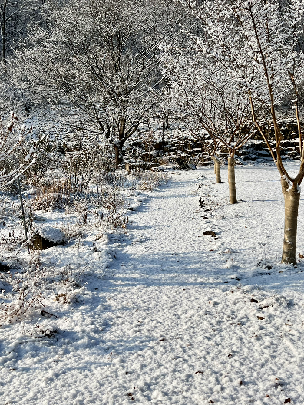 매너로서 ‘경청’을 좋아하지만, 전원생활을 시작한 이래, 남편과 나는 여러 조언들은 귓등으로 흘려듣고 우리 뜻대로 정원을 만들고, 산책로를 구상하고, 식생활에 필요한 만큼만 채마밭을 일궜다. 이곳엔 간 밤에 눈이 내렸다. 차고 메마른 겨울 정원에서 눈들은 아름다운 꽃으로 피어나고 있다.