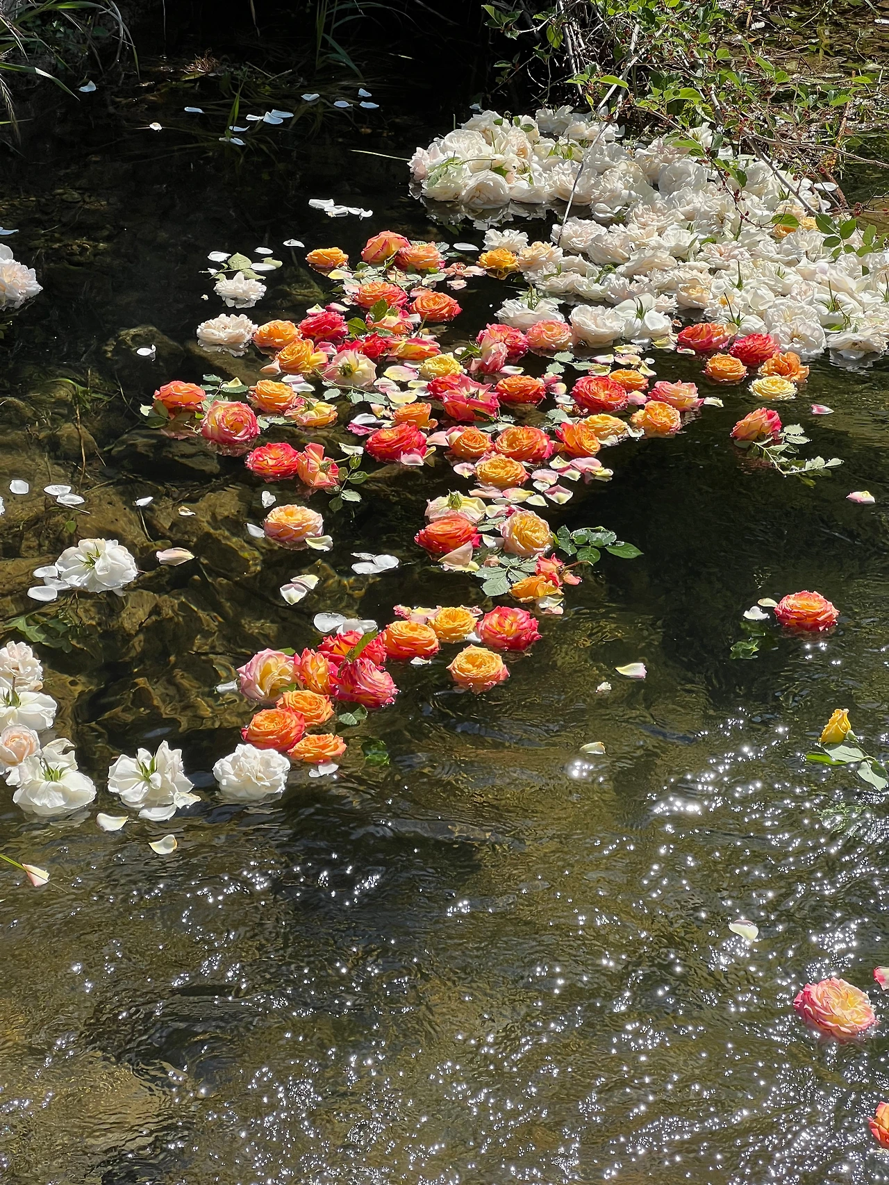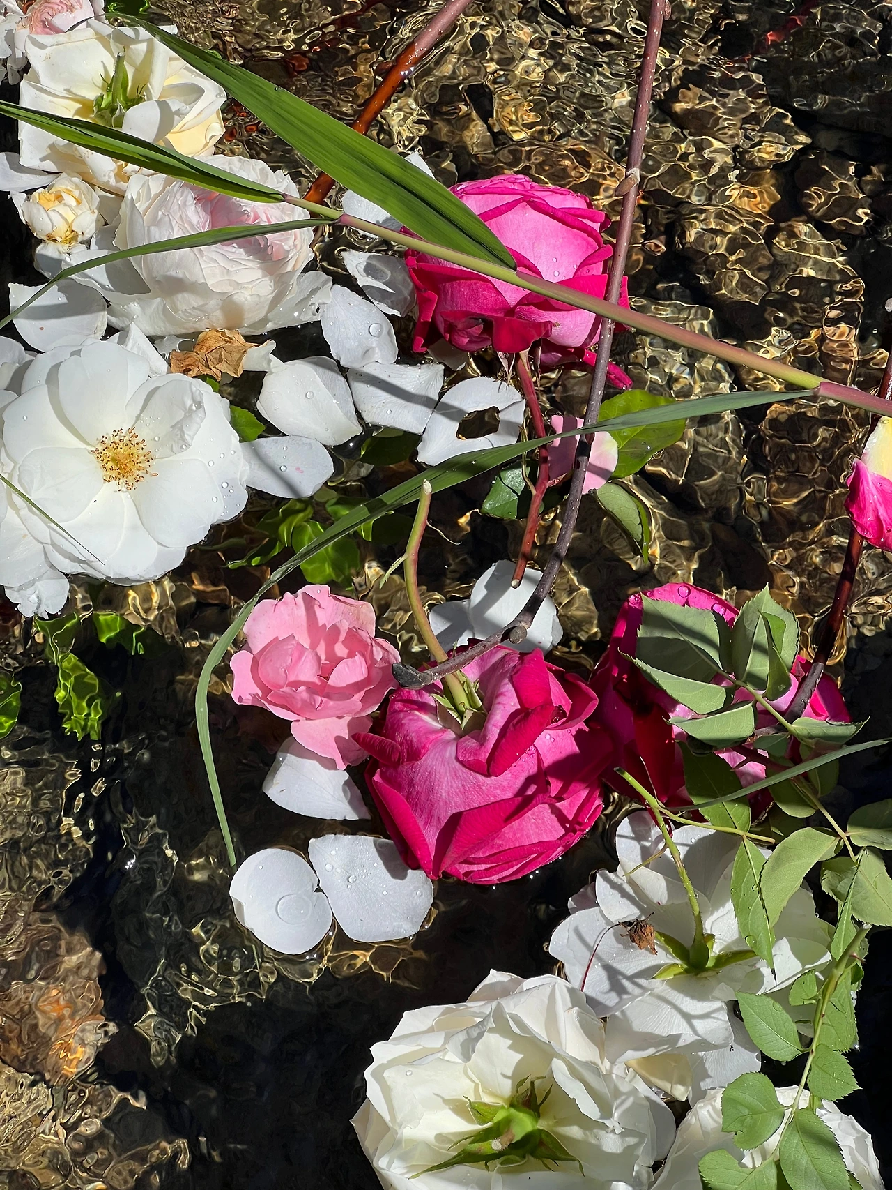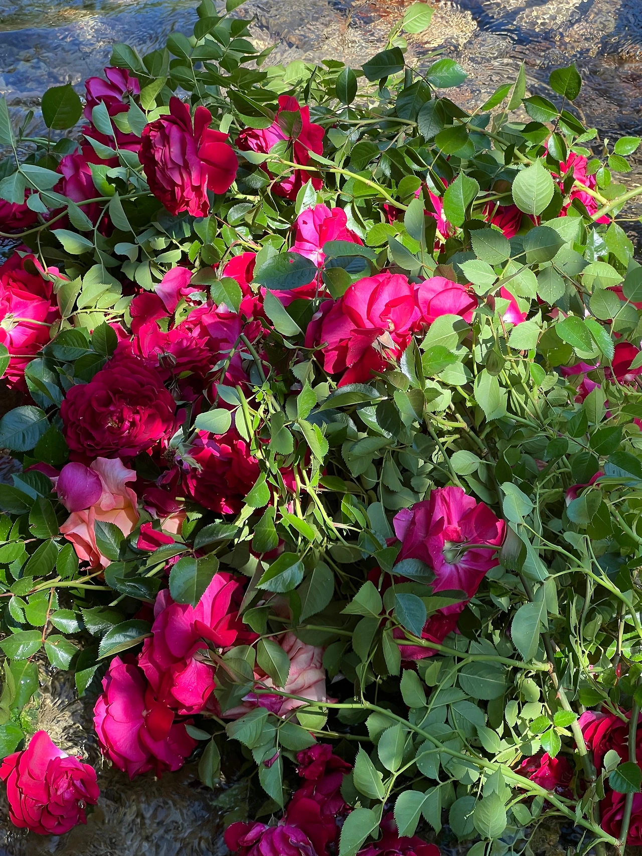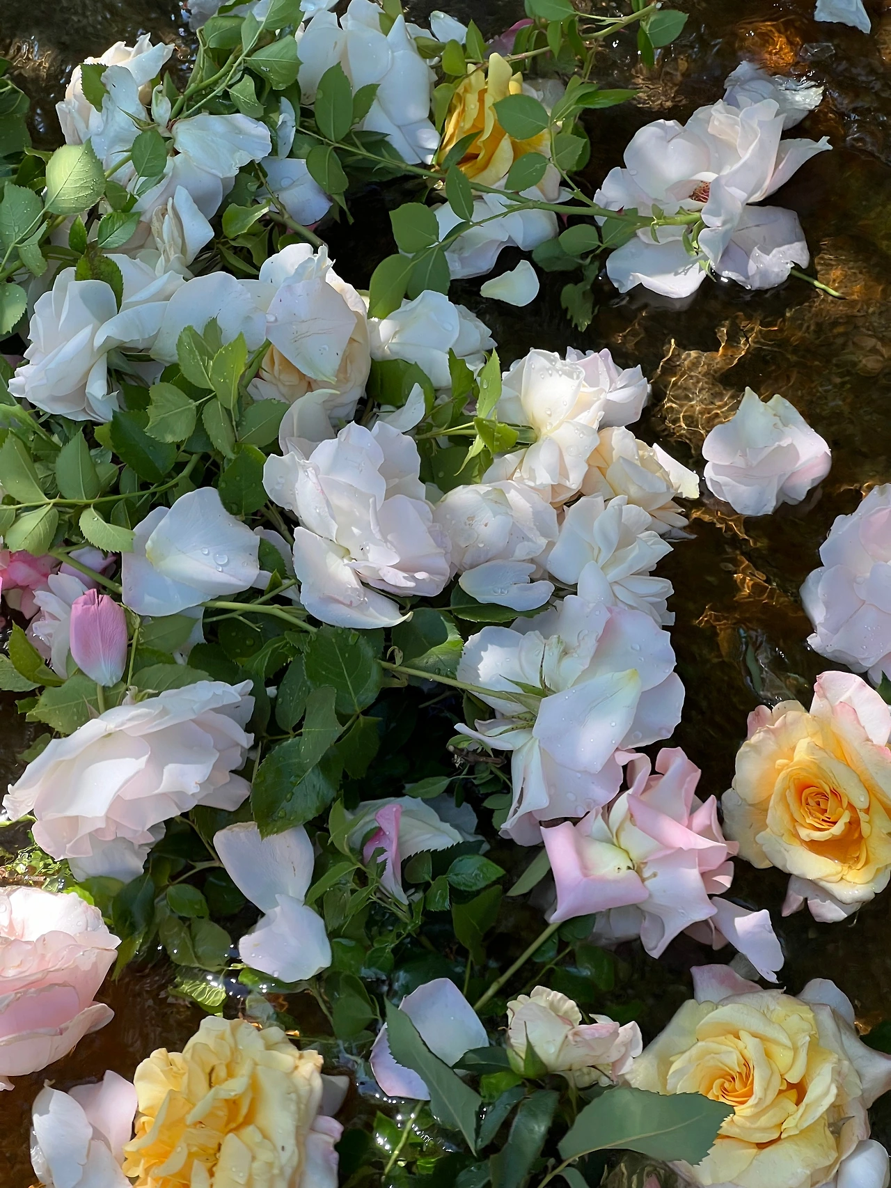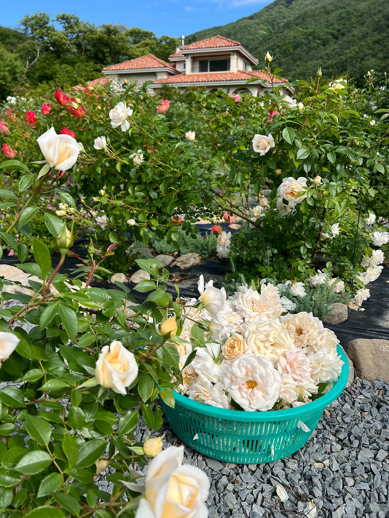 내 일 년의 삶은 스마트폰 사진첩에 가장 생생하게 기록되어 있다. 혼자만의 시간에 사진첩을 보다가 지금도 가슴 뭉클해지는 기억을 글로 남겨본다. 잘 피어난 무수한 장미들은 집을 떠나 미국에 가기 전 데드헤딩 겸 거의 다 잘라야 했다. 땅에 묻기에는 그 향과 꽃의 아름다움이 아쉬워 집 옆의 계곡으로 흘려보내기로 했다. 커다란 소쿠리에 담겨 뿌려지던 장미들은 물의 흐름에 제 몸을 싣고 흘러갔다.