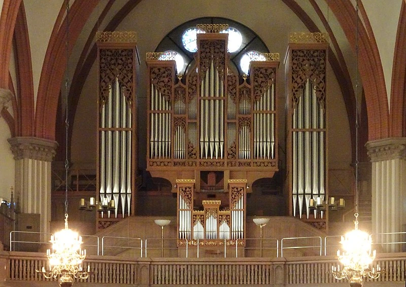 칸타테 도미노가 녹음된 곳은 스웨덴 스톡홀름 오스카 교회입니다. 음반 표지 이미지의 교회로 고딕 양식으로 지어진 교회입니다. 스테인글라스가 아름다운 교회로도 유명하지만 더 유명한 것은 바로 스웨덴에서 가장 큰 파이프 오르간 중 하나가 교회에 있다는 것입니다. 1949년에 건설되었다고 하는데 총 78개의 부품과 5,200개가 넘는 파이프로 구성된 멋진 오르간입니다. 이 오르간의 소리는 마치 하늘의 음색처럼 제단 위 합창단 자리에 있는 두 개의 홀을 통해 나옵니다.